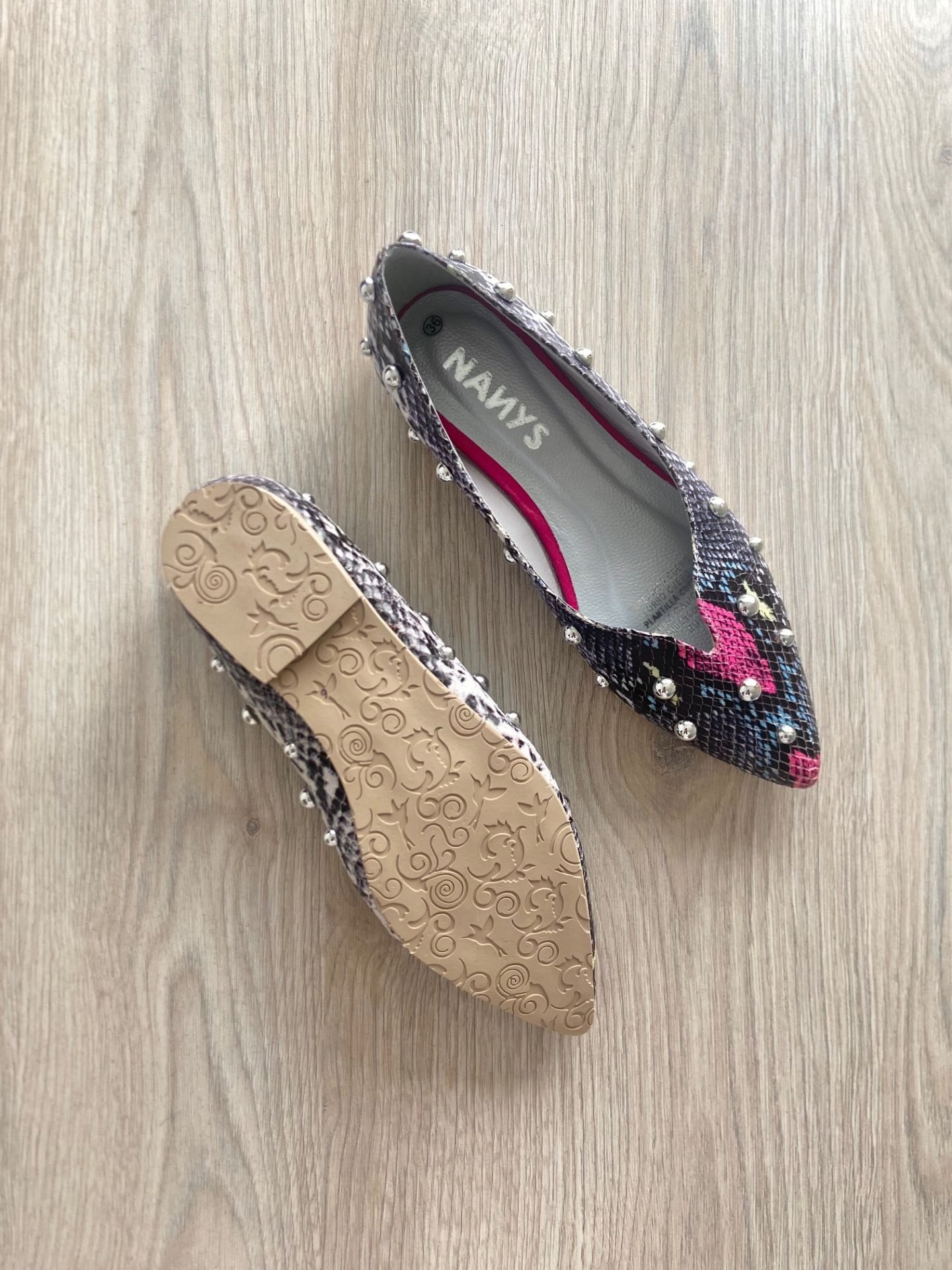 Baleta con taches en cuero de colores