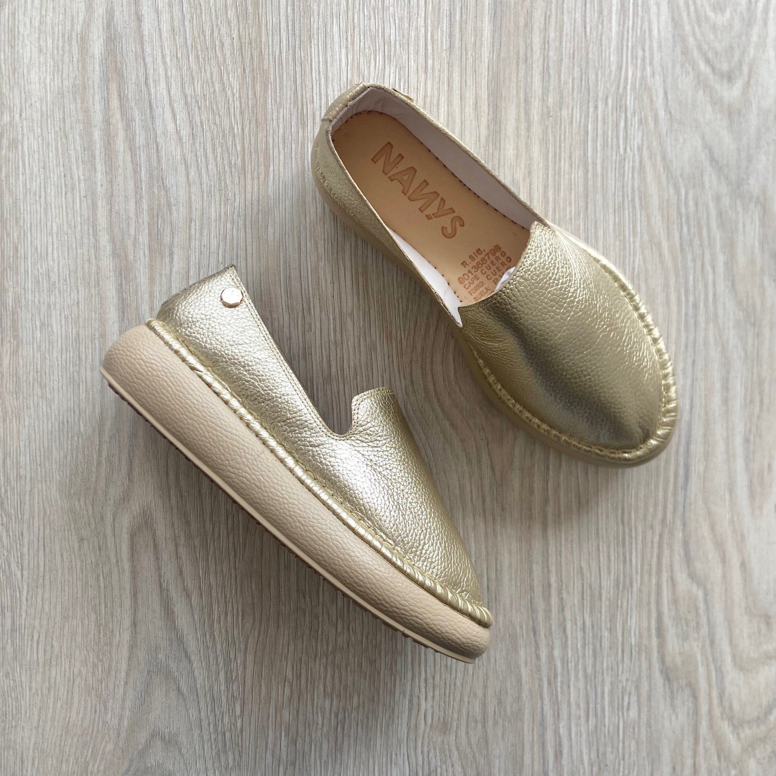 Baletas alpargatas doradas en cuero. Forradas en cuero. Hechas en Colombia.