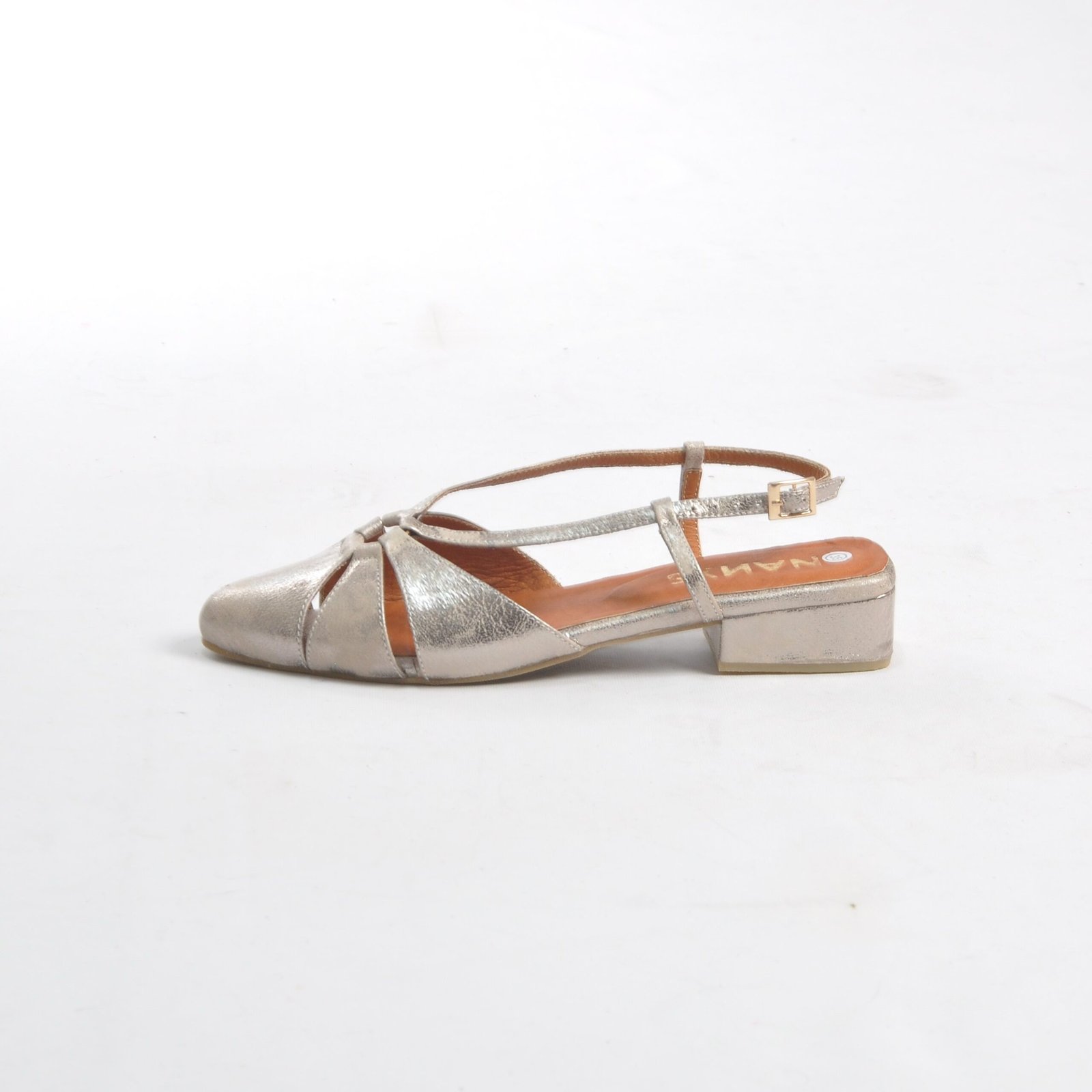 Baletas gris tornasol en cuero. Forradas en cuero. Tacón 2.5. Con hebilla. Hechas en Colombia