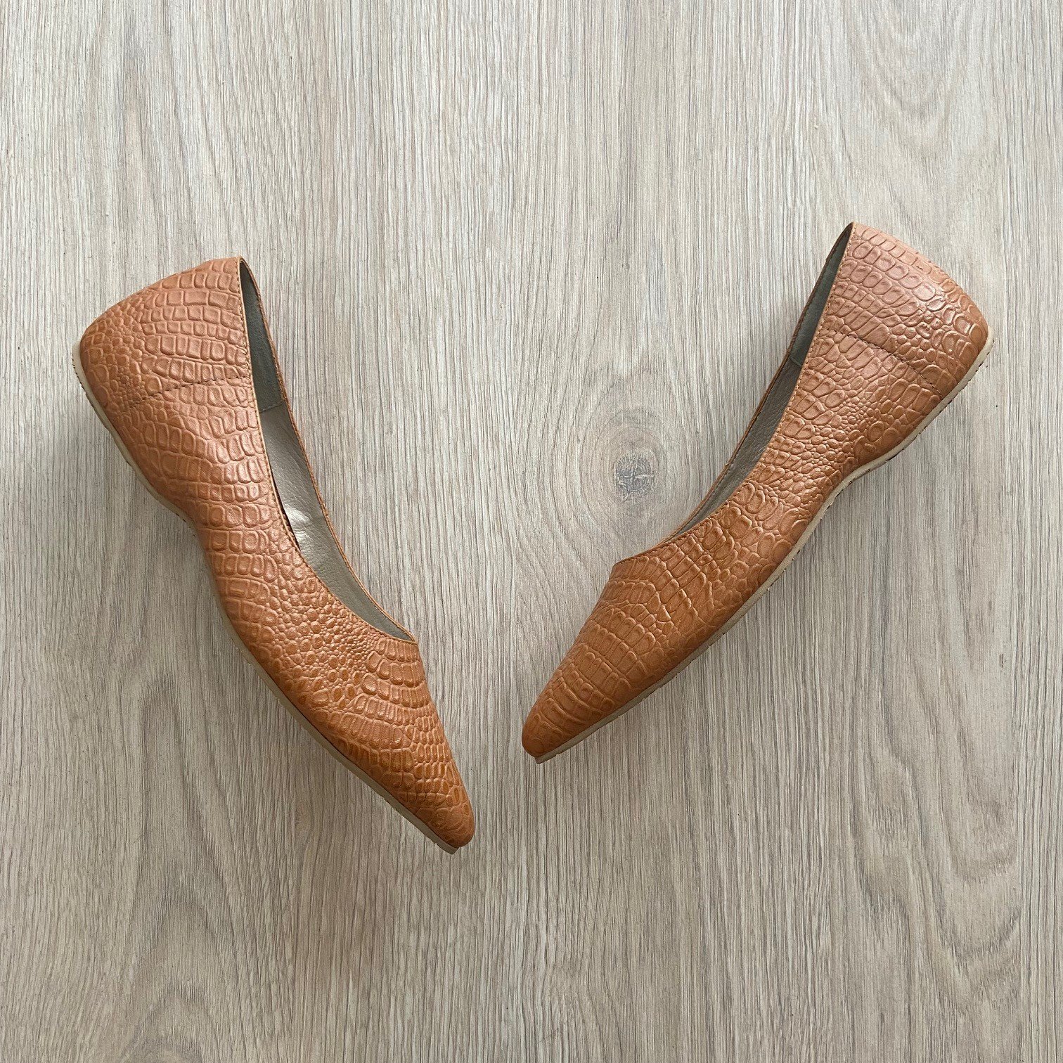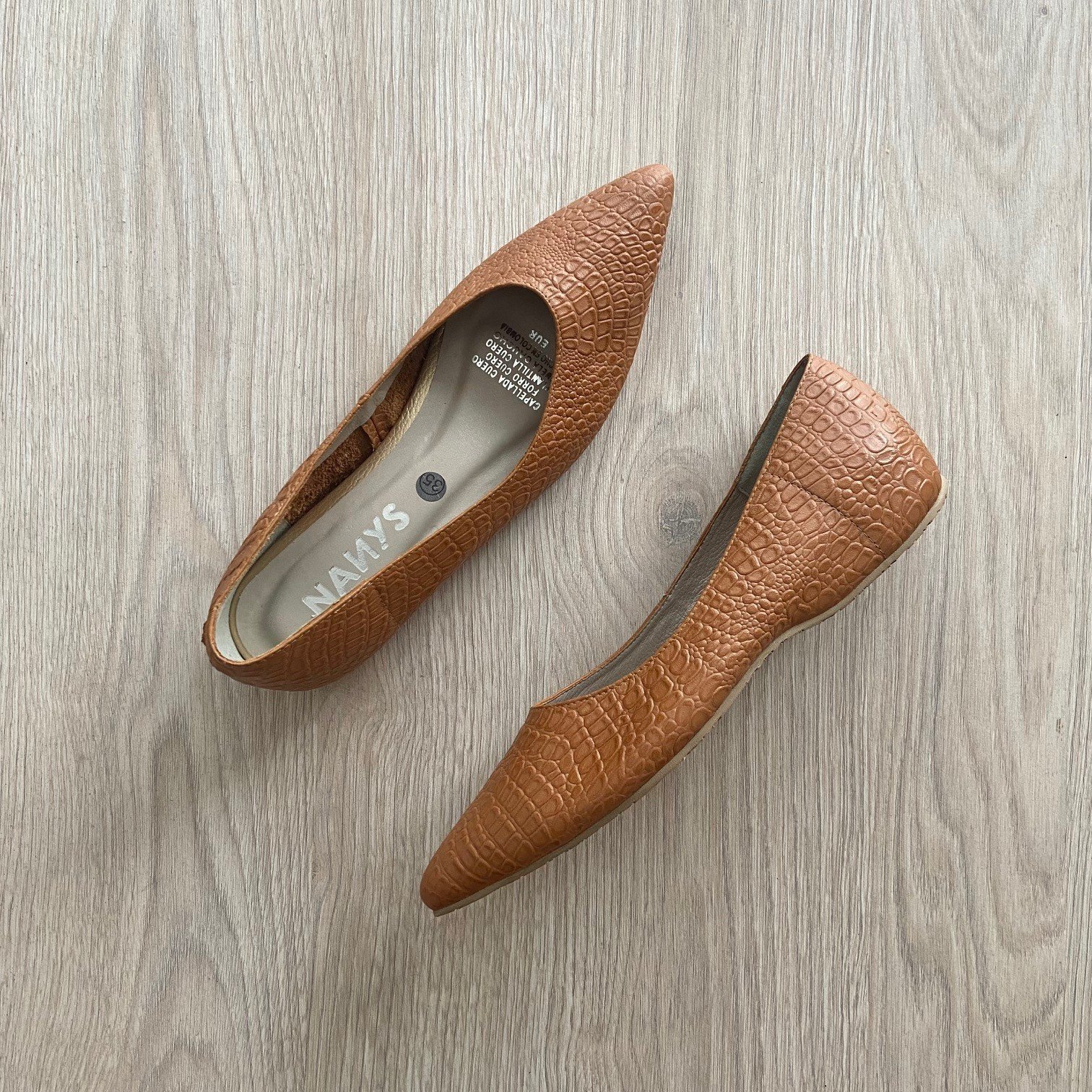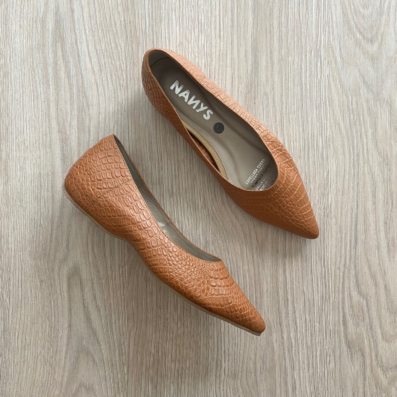 Baletas miel en cuero con tacón interno 1.5. Suela en goma. Forradas en cuero. Hechas en Colombia.