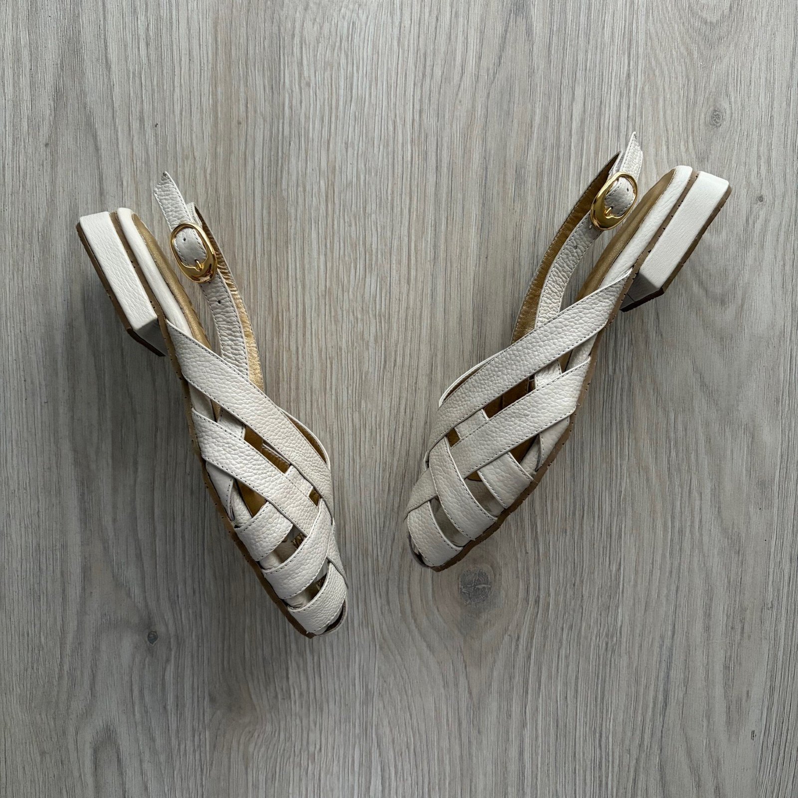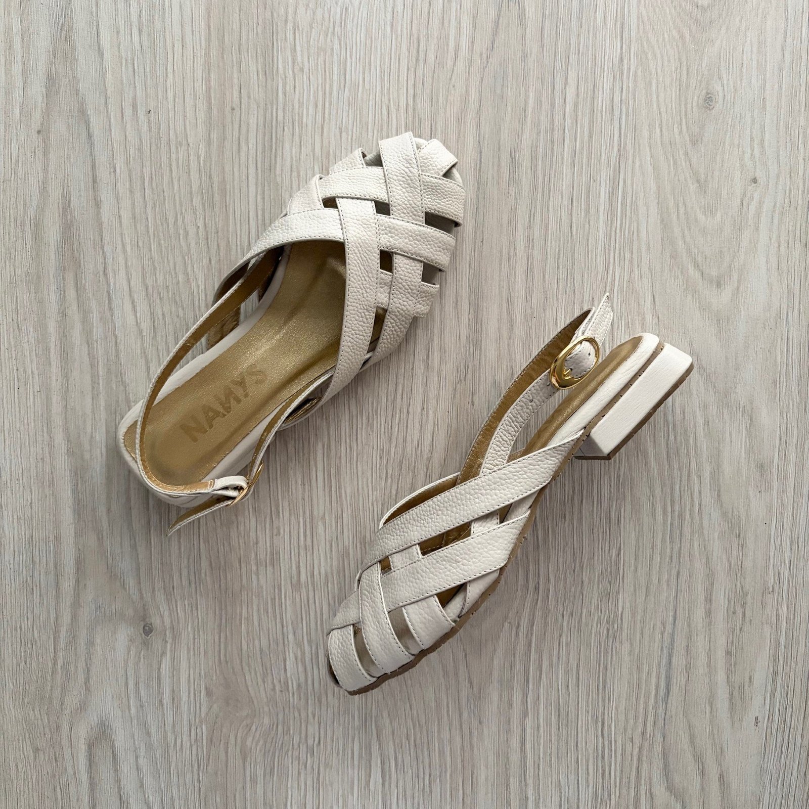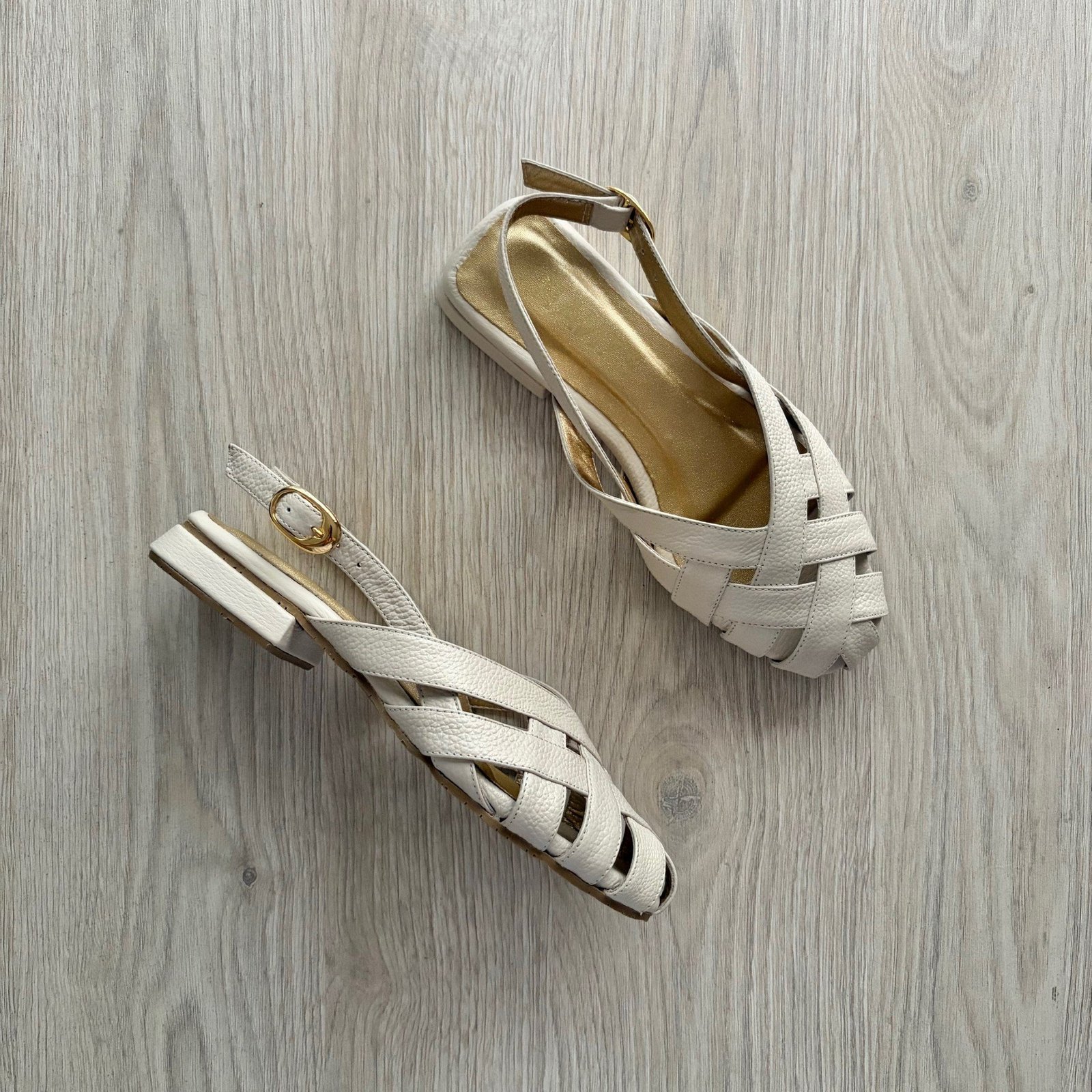 Baletas talco en cuero tipo canasta. Tacón 1.5. Con hebilla. Forradas en cuero. Hechas en Colombia.