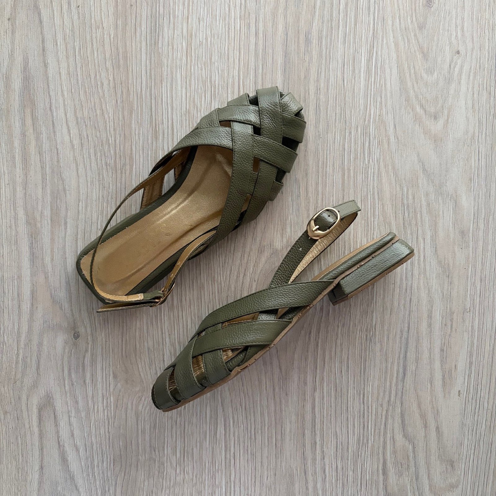 Baletas verde en cuero tipo canasta