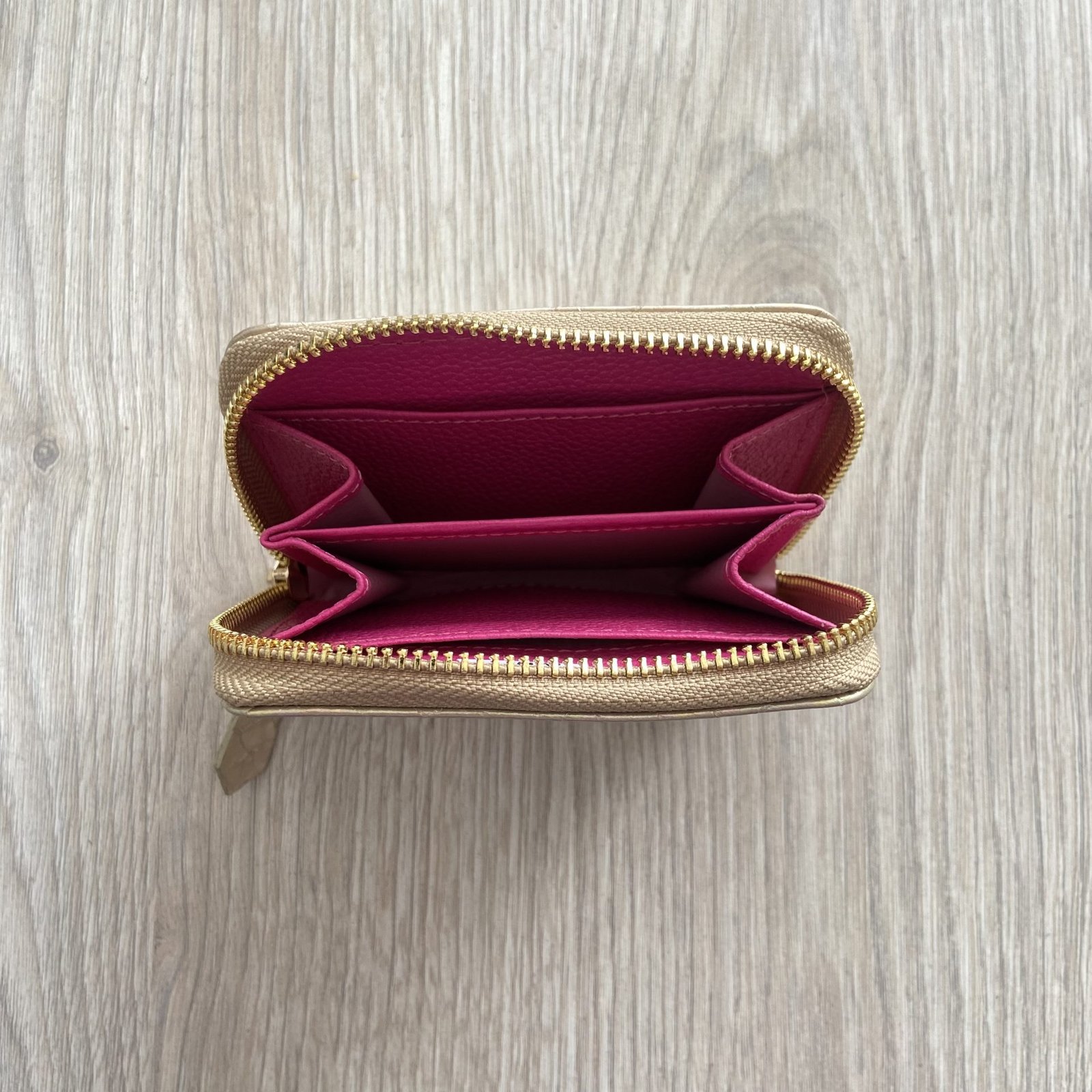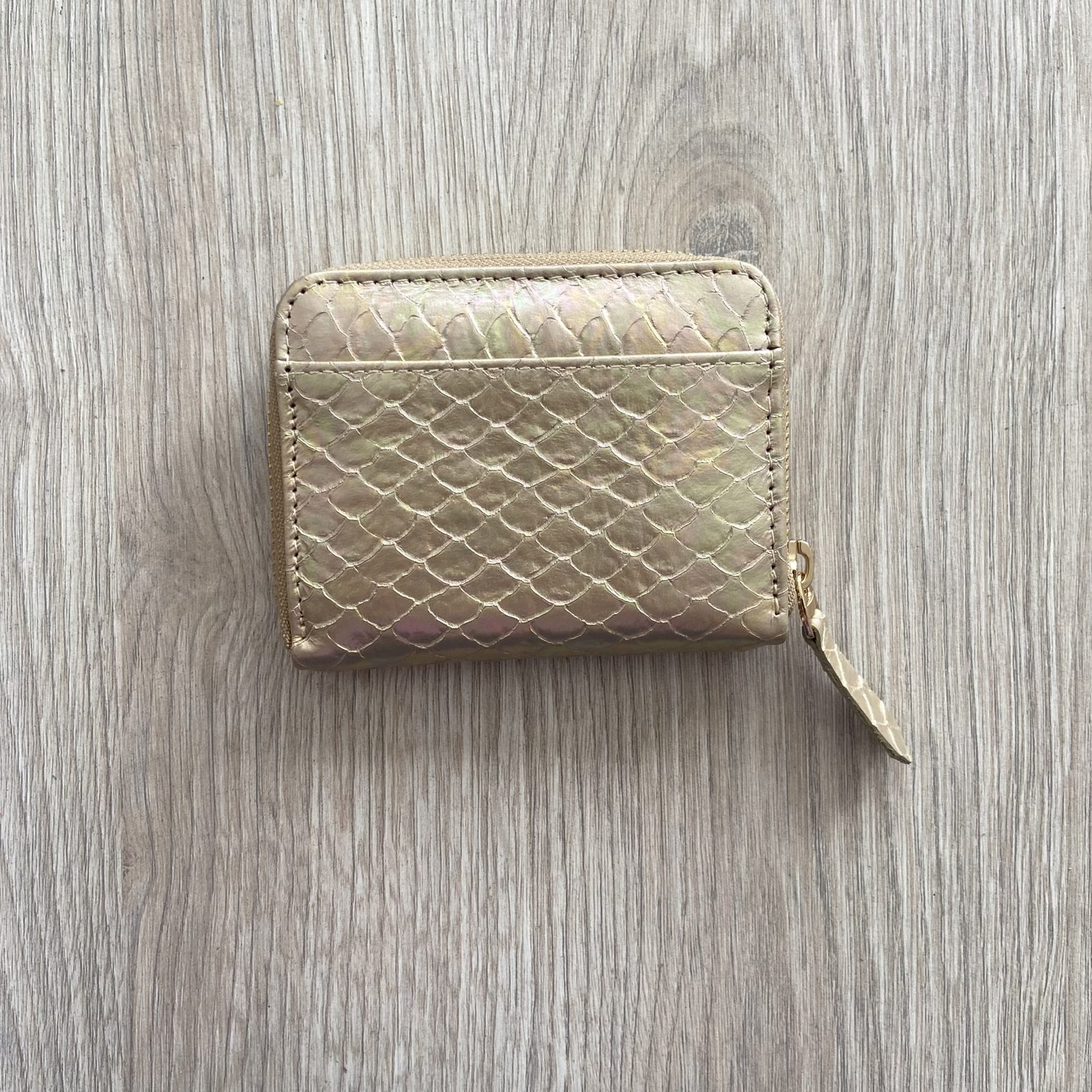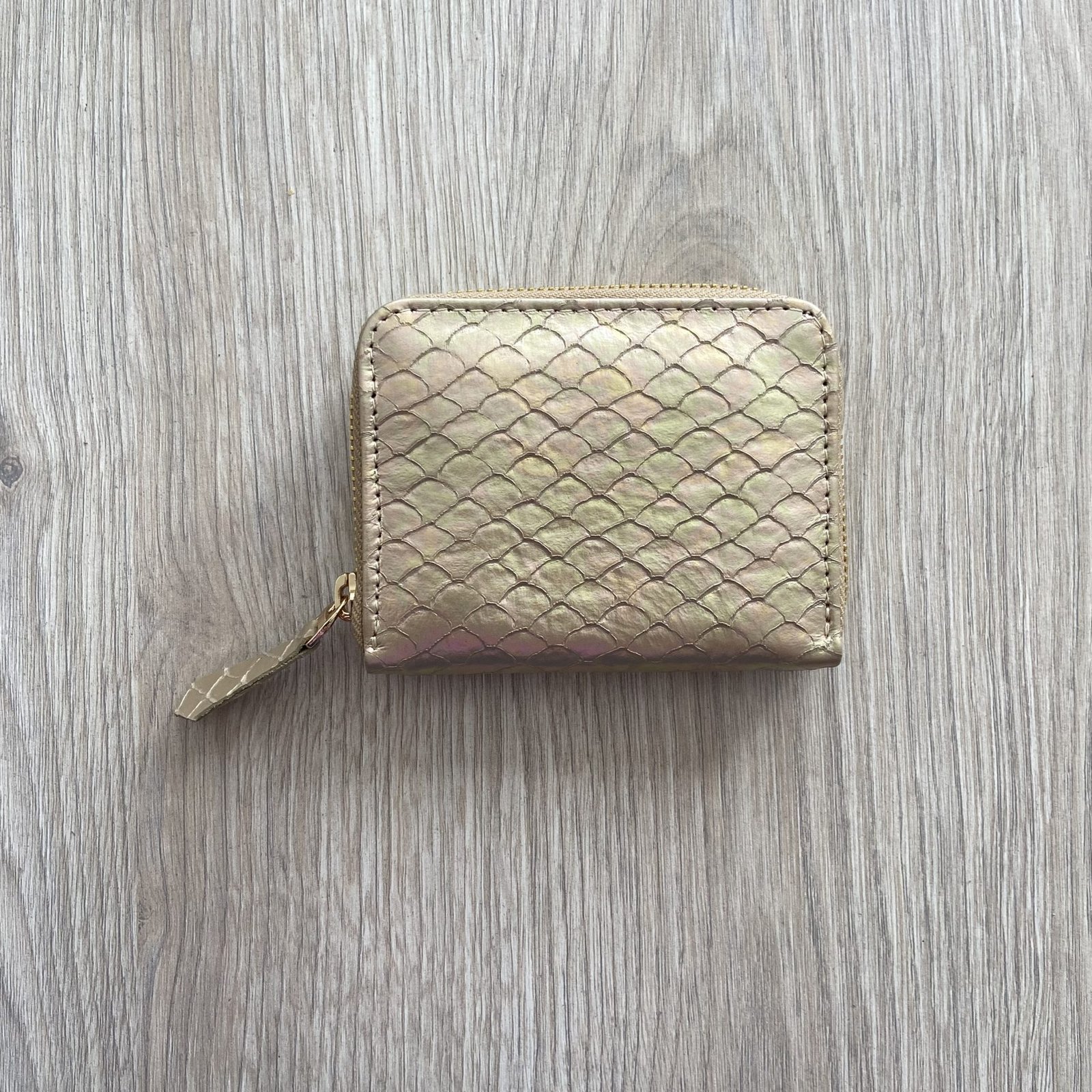 Billetera dorado con cremallera en cuero