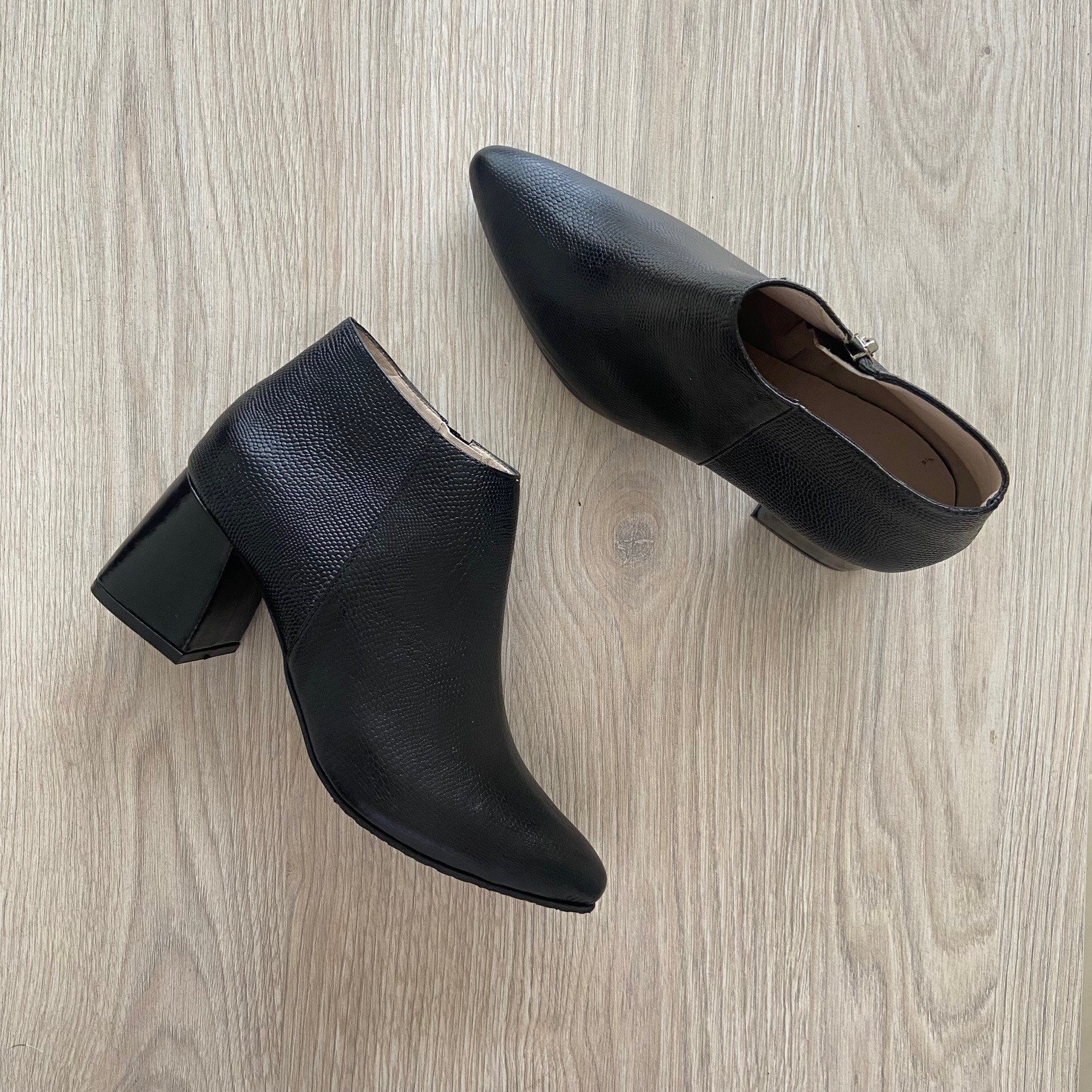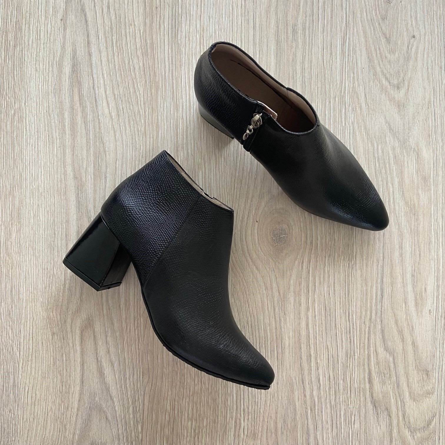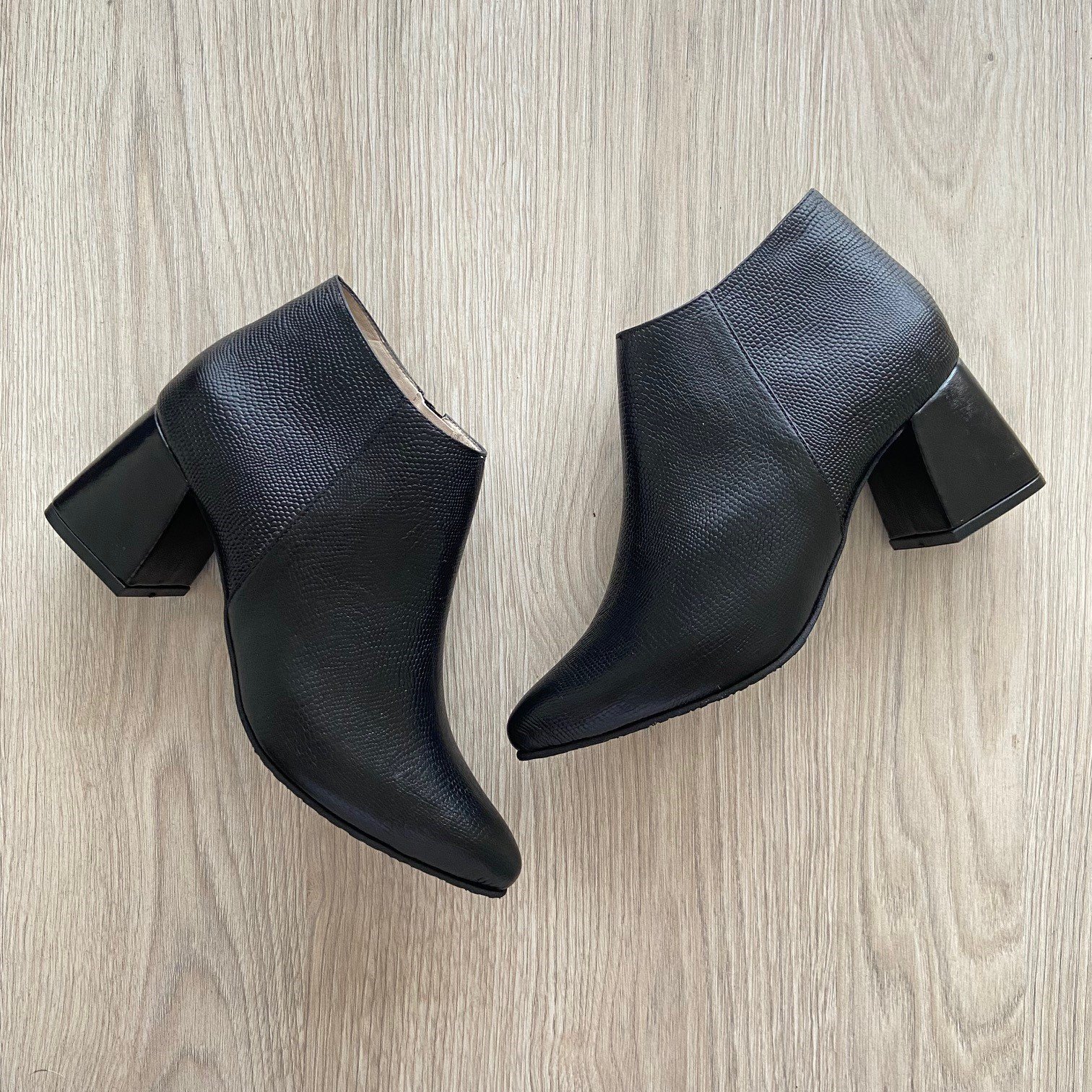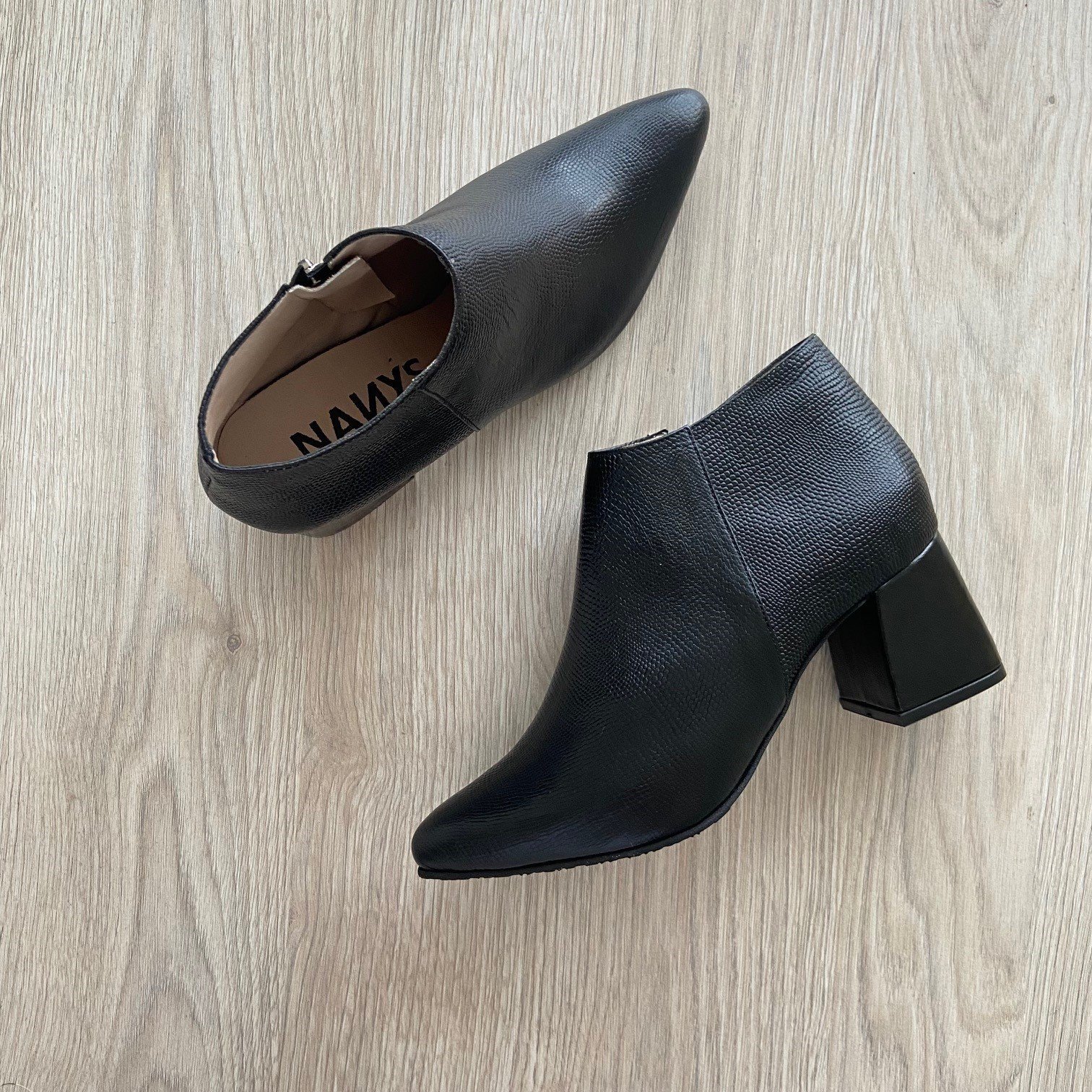 Botines negros en cuero puntudos