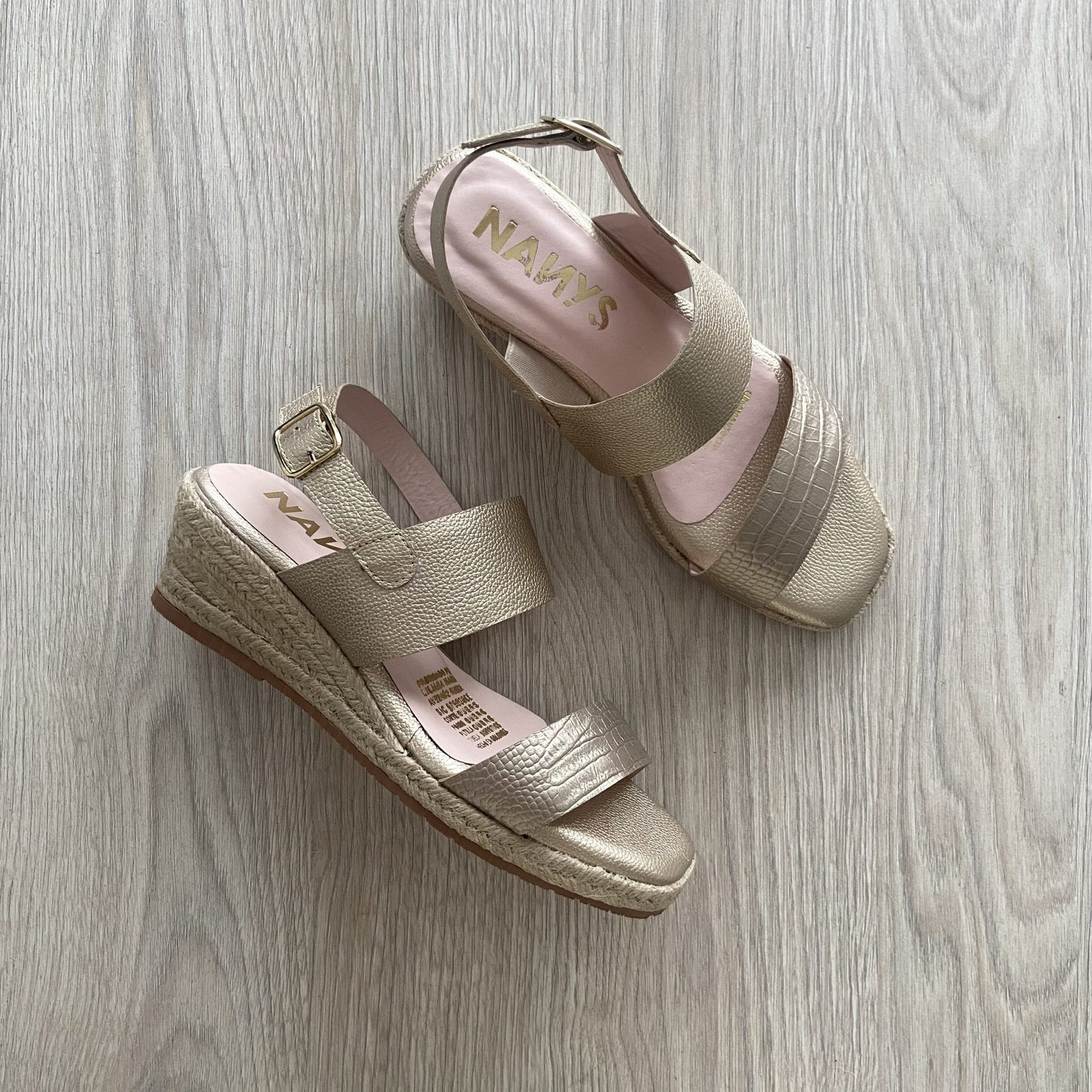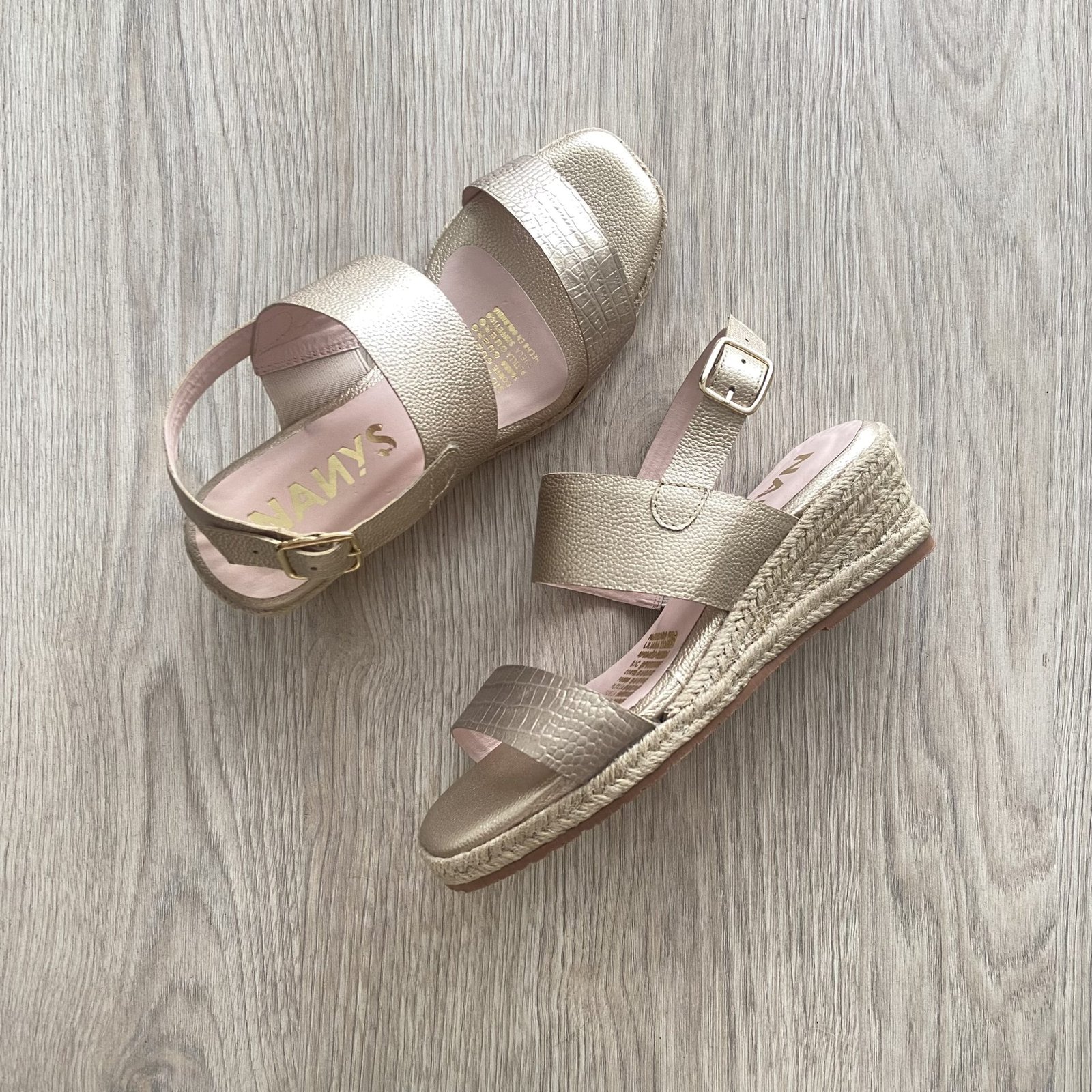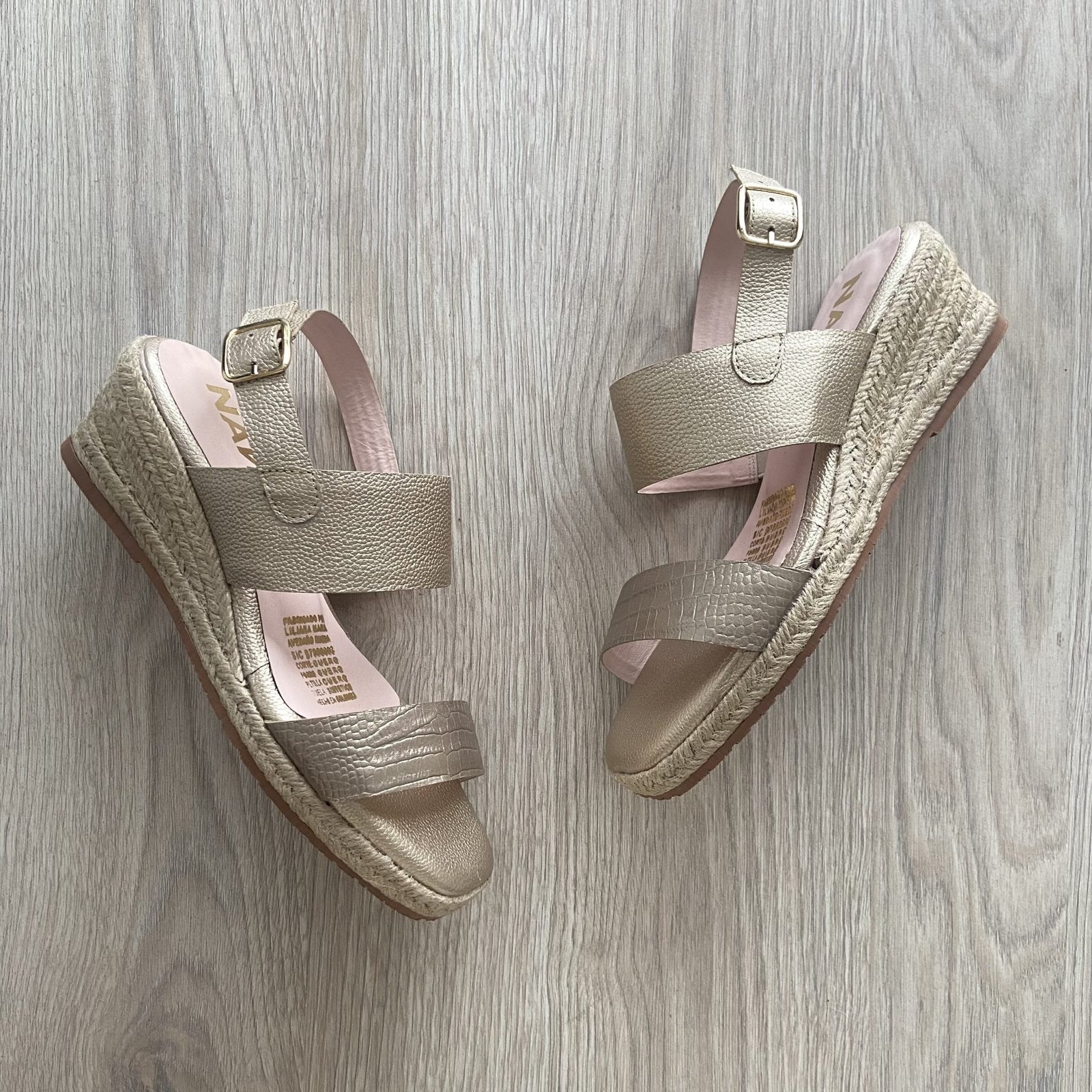 Sandalias doradas en cuero con plataforma en yute