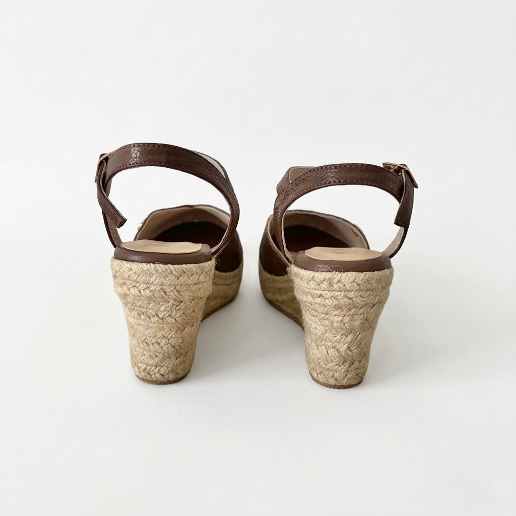 Sandalias moca en cuero con plataforma forrada en yute. Forradas en cuero. Hechas en Colombia.