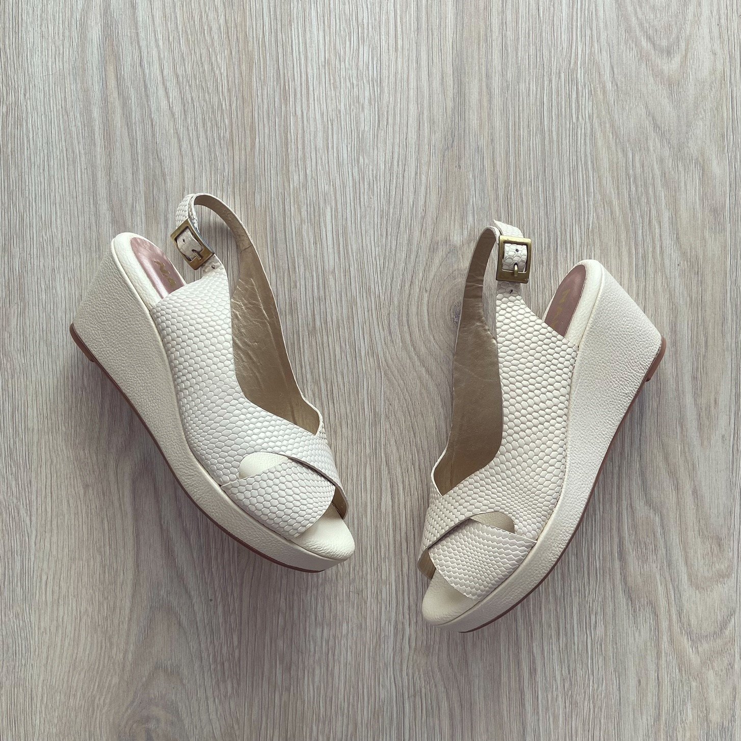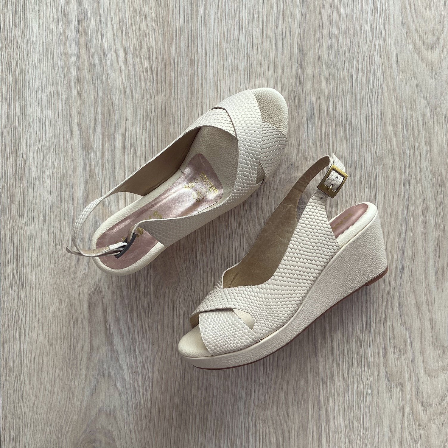 Sandalias talco en cuero con tacón playa. Tacón 3.5 cm mas plataforma. Forradas en cuero. Hechas en Colombia.