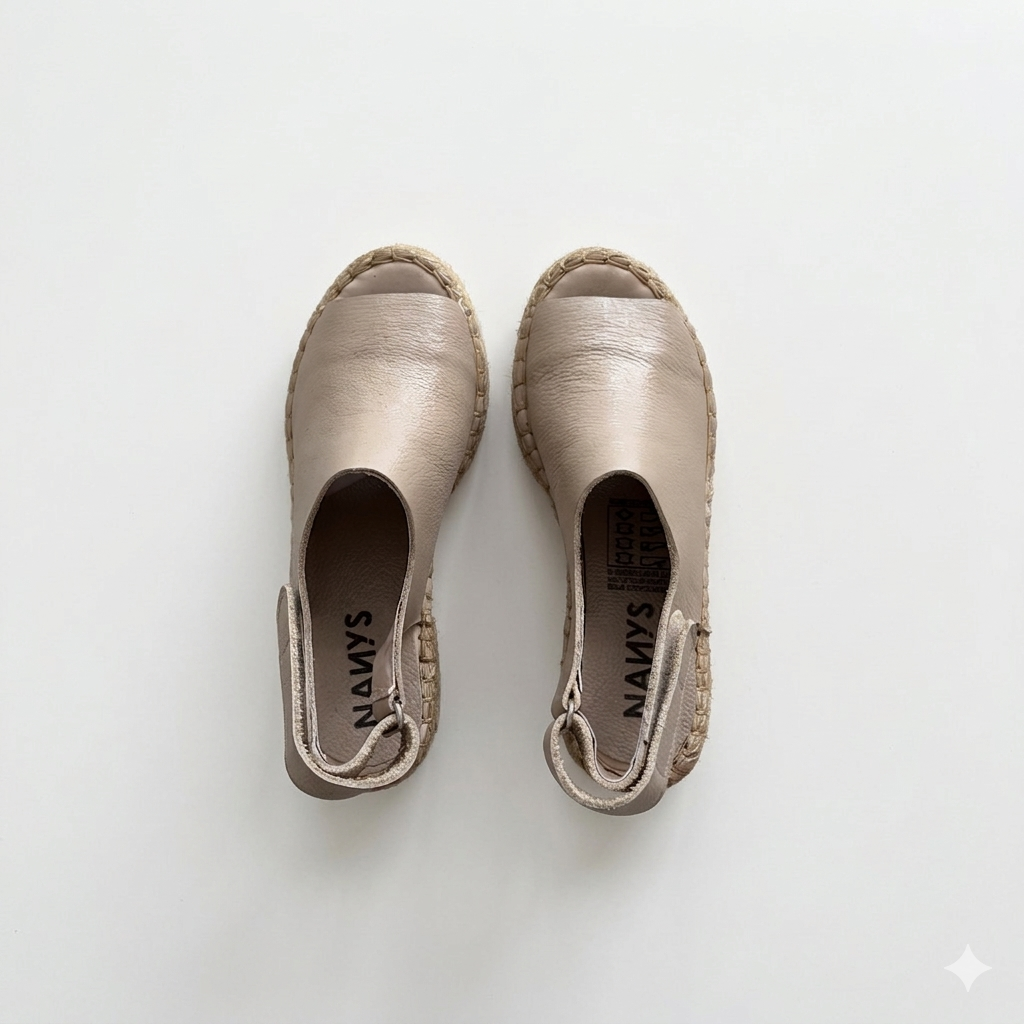 Sandalias taupe en cuero con plataforma en yute