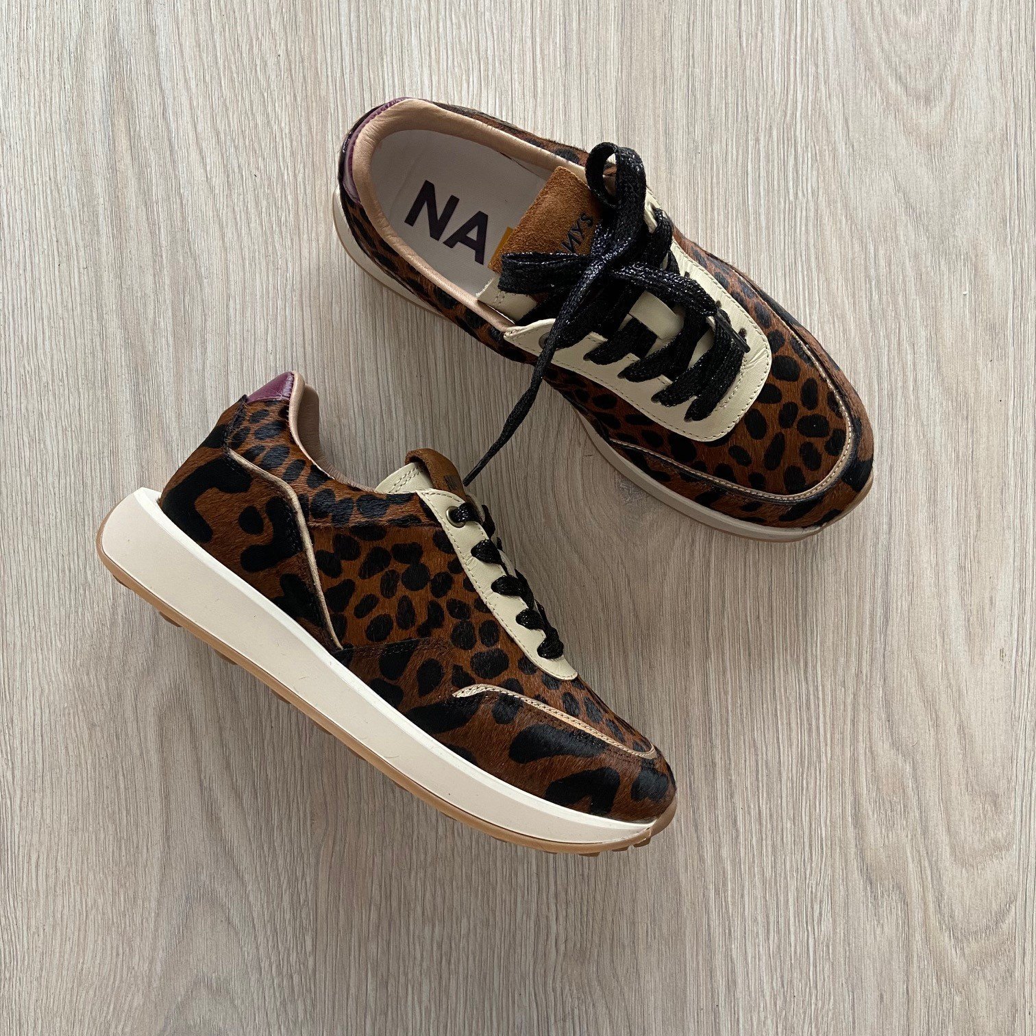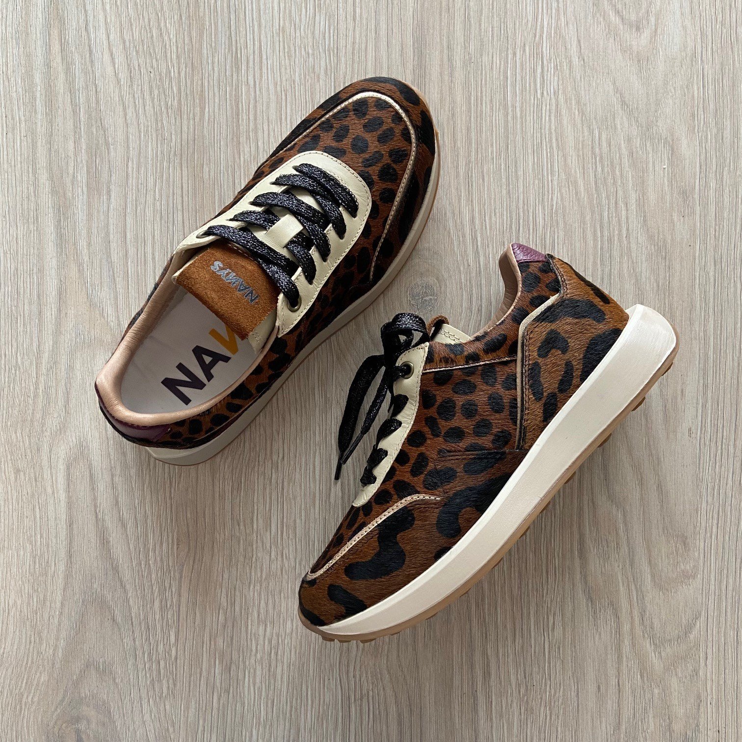 Tenis animal print con dorado y beige en cuero. Suela en goma antideslizante. Forrados en cuero. Hechos en Colombia.