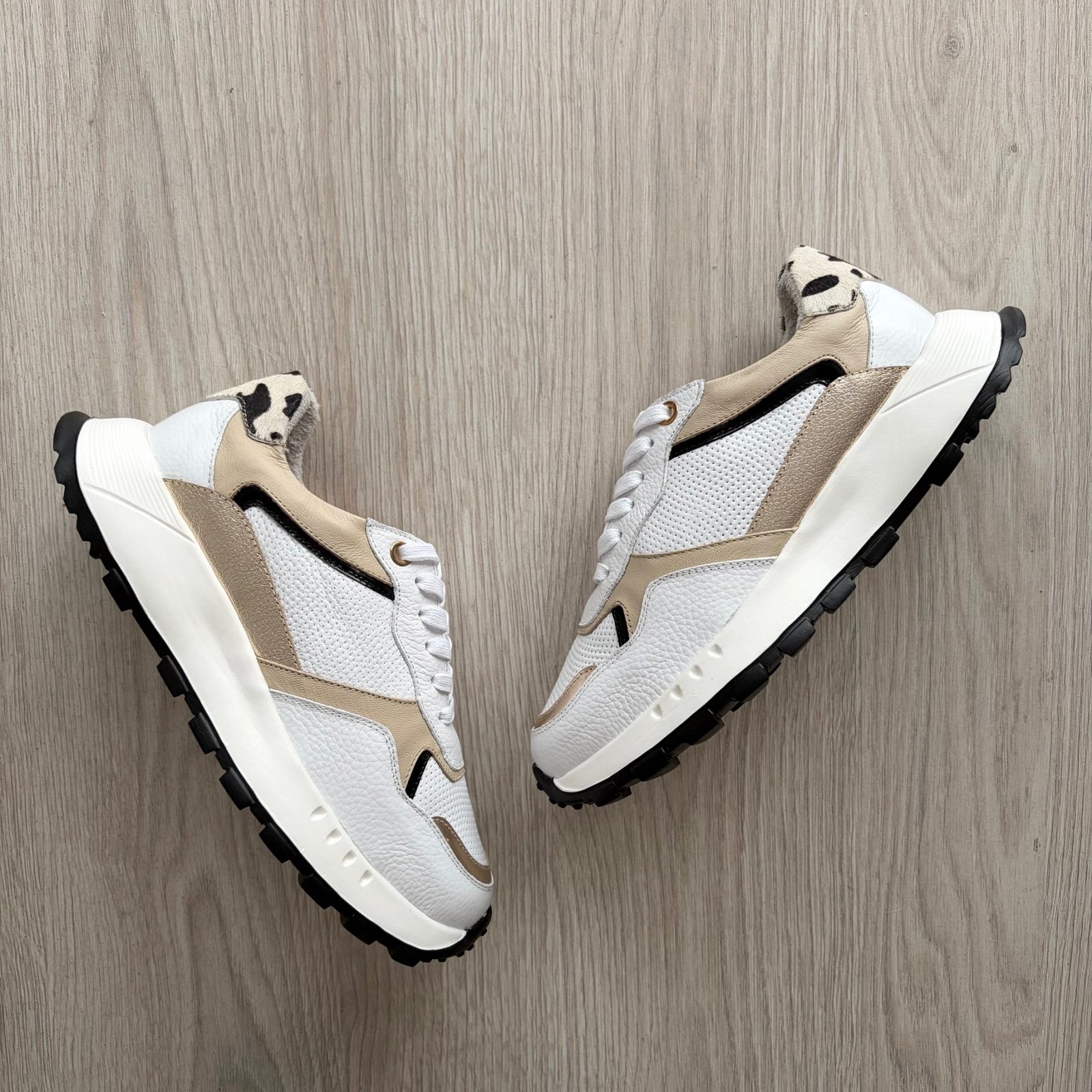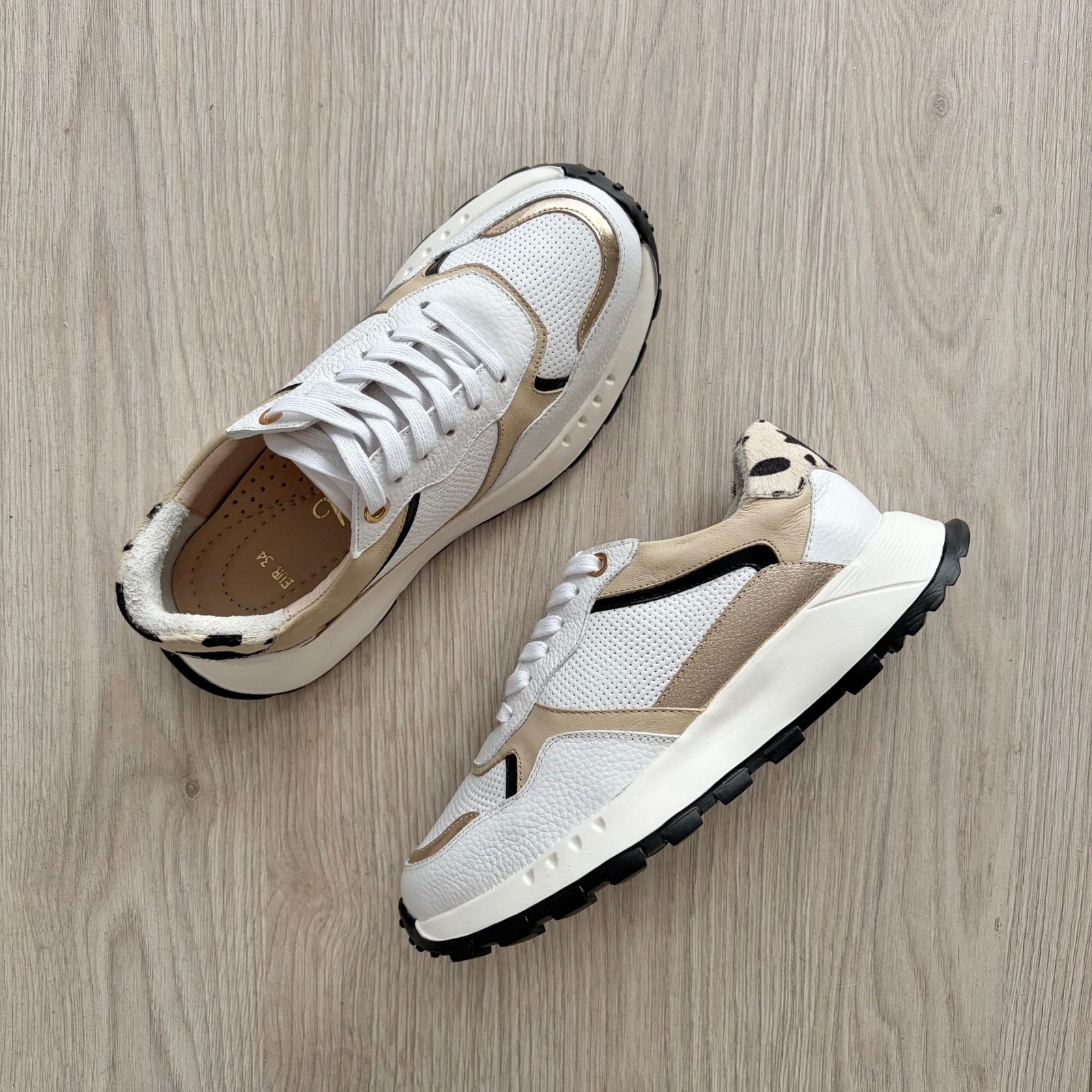 Tenis blanco con colores en cuero. Forrados en cuero. Suela liviana. Hechos en Colombia.