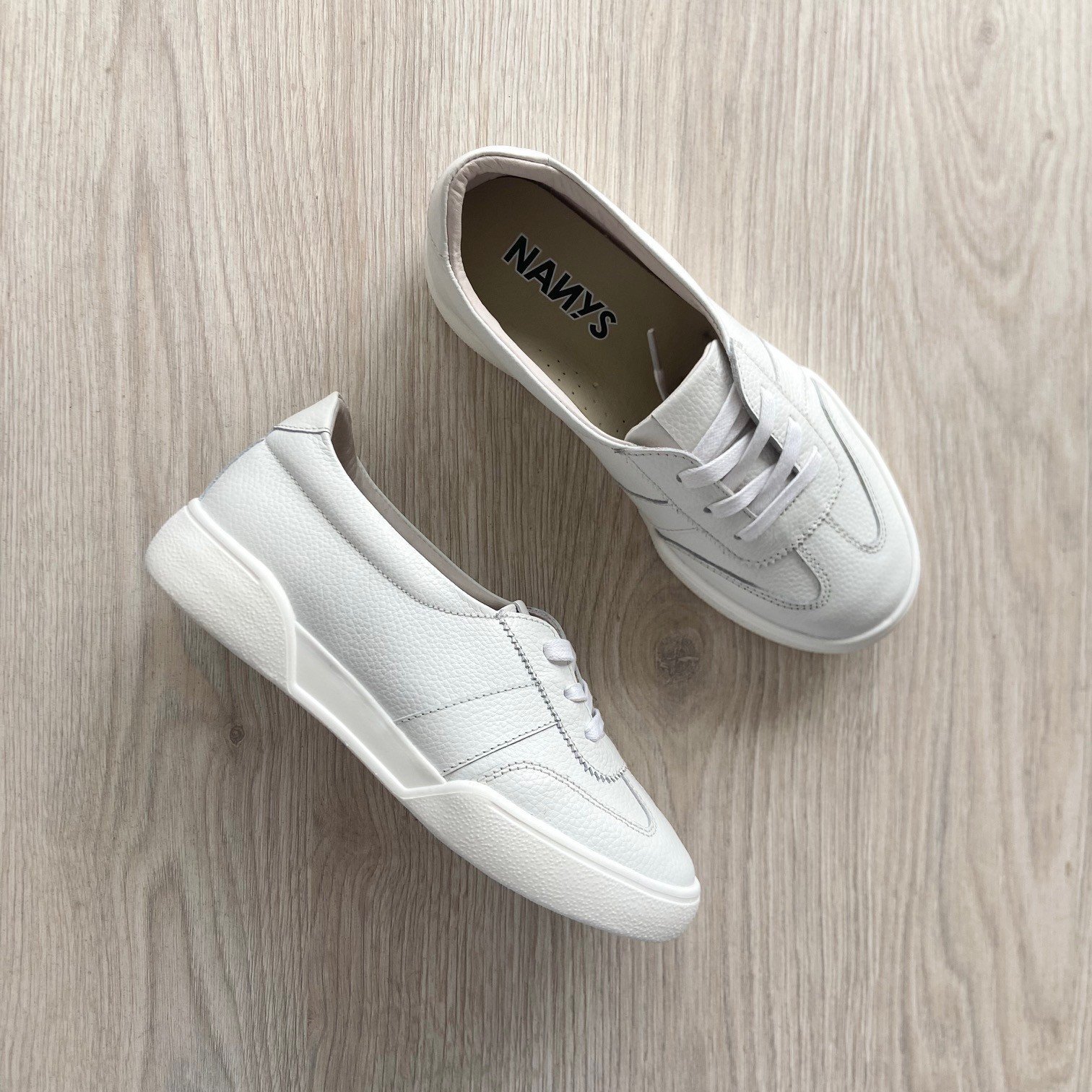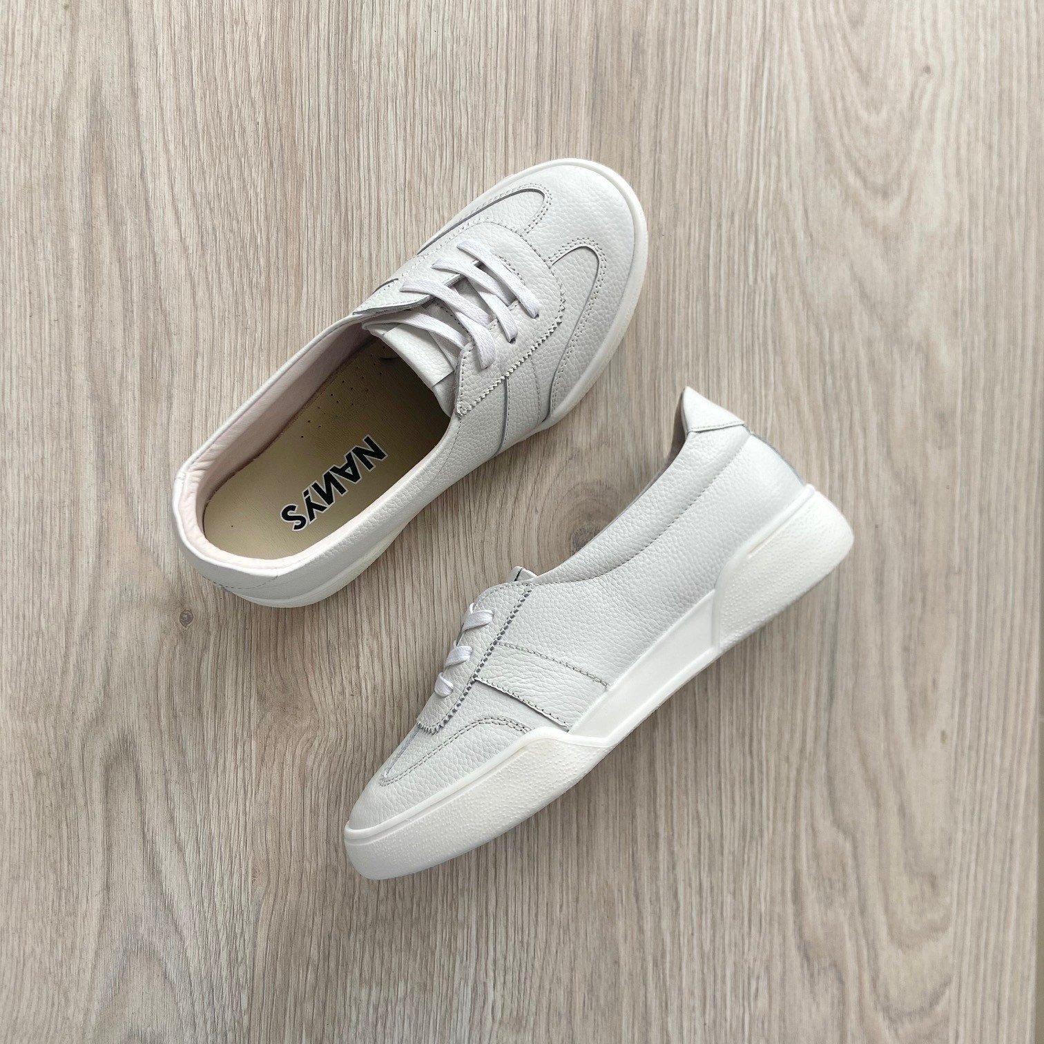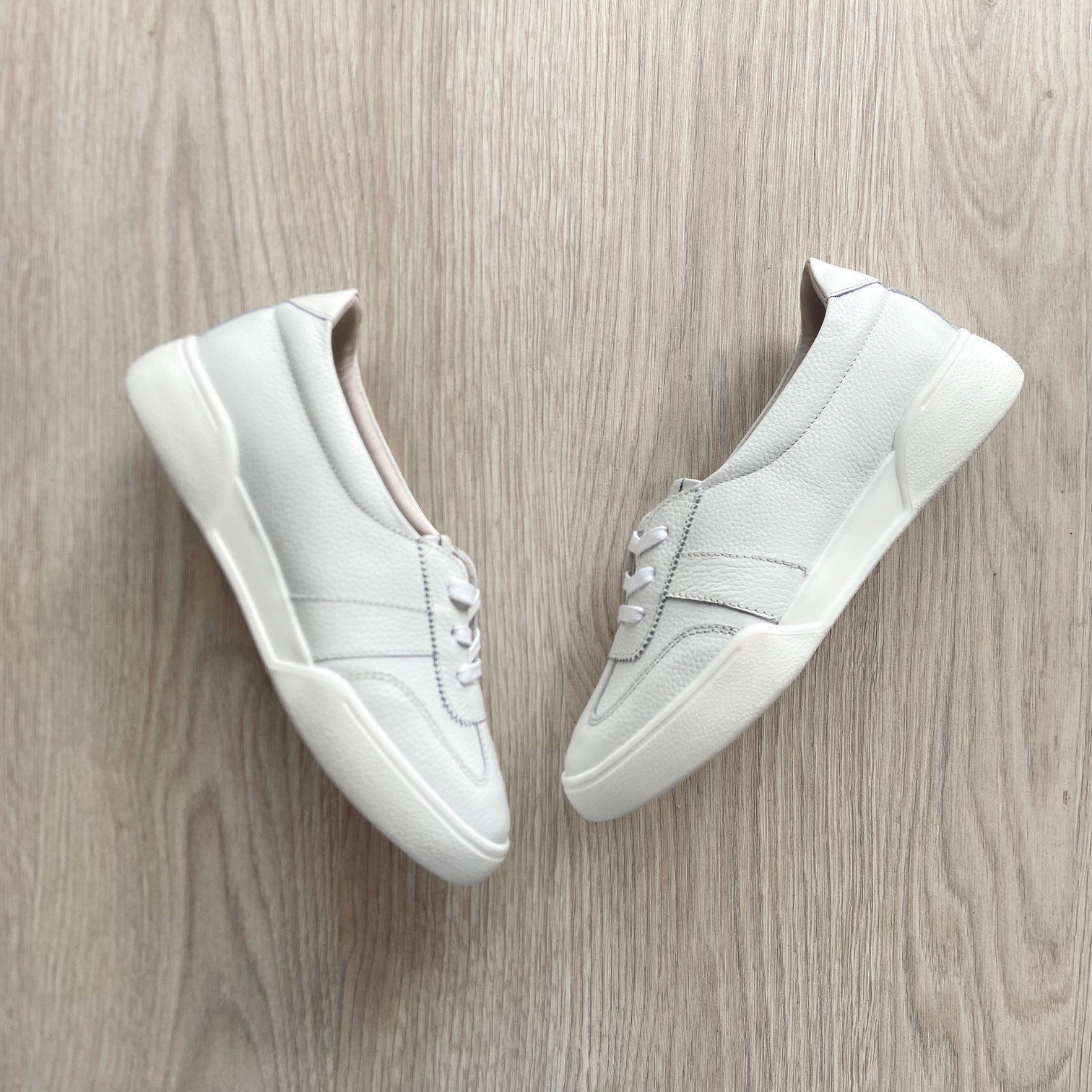 Tenis blancos en cuero bajitos. Forrados en cuero. Cordones encerados. Hechos en Colombia.