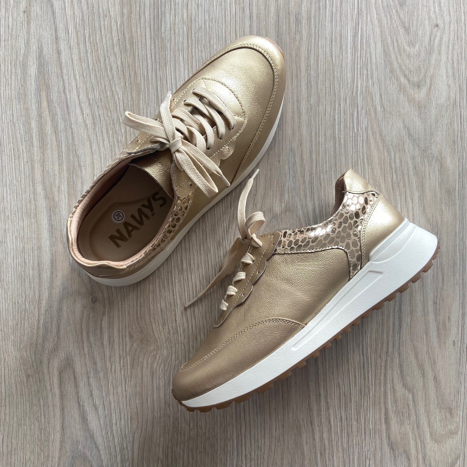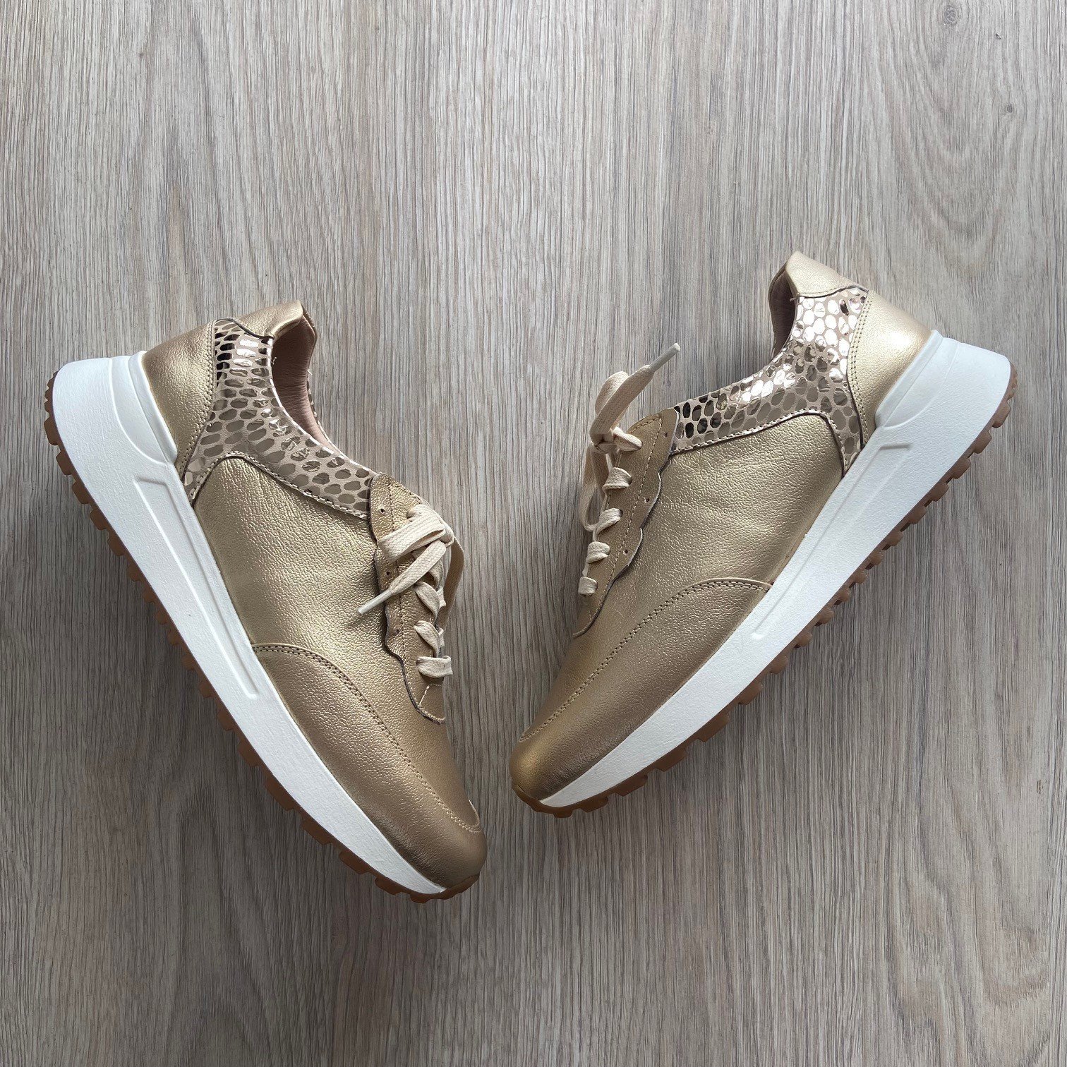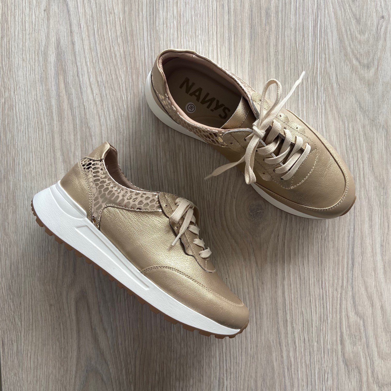 Tenis clásico dorado en cuero. Forrados en cuero. Cordones encerados. Plantilla ergonómica. Hechos en Colombia.