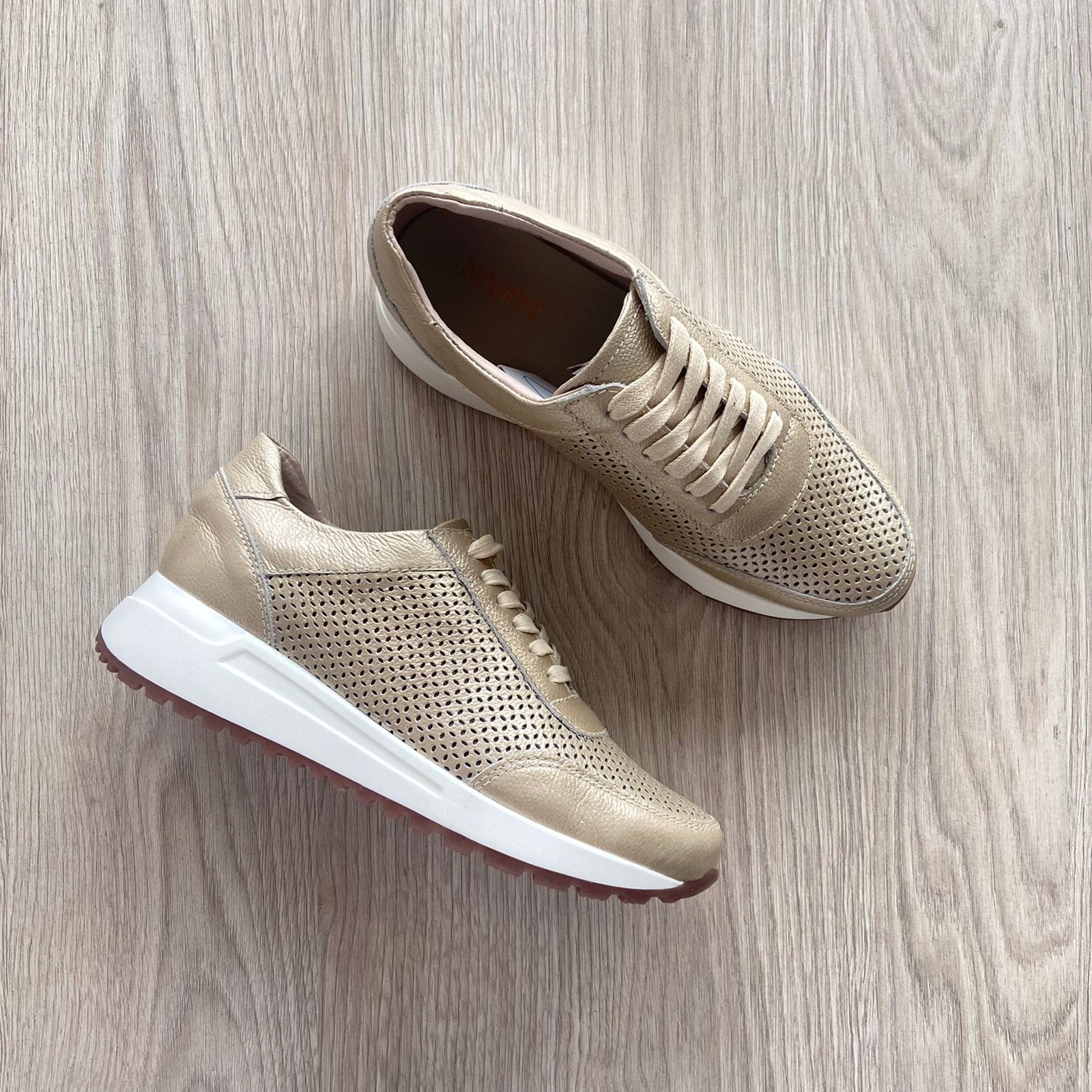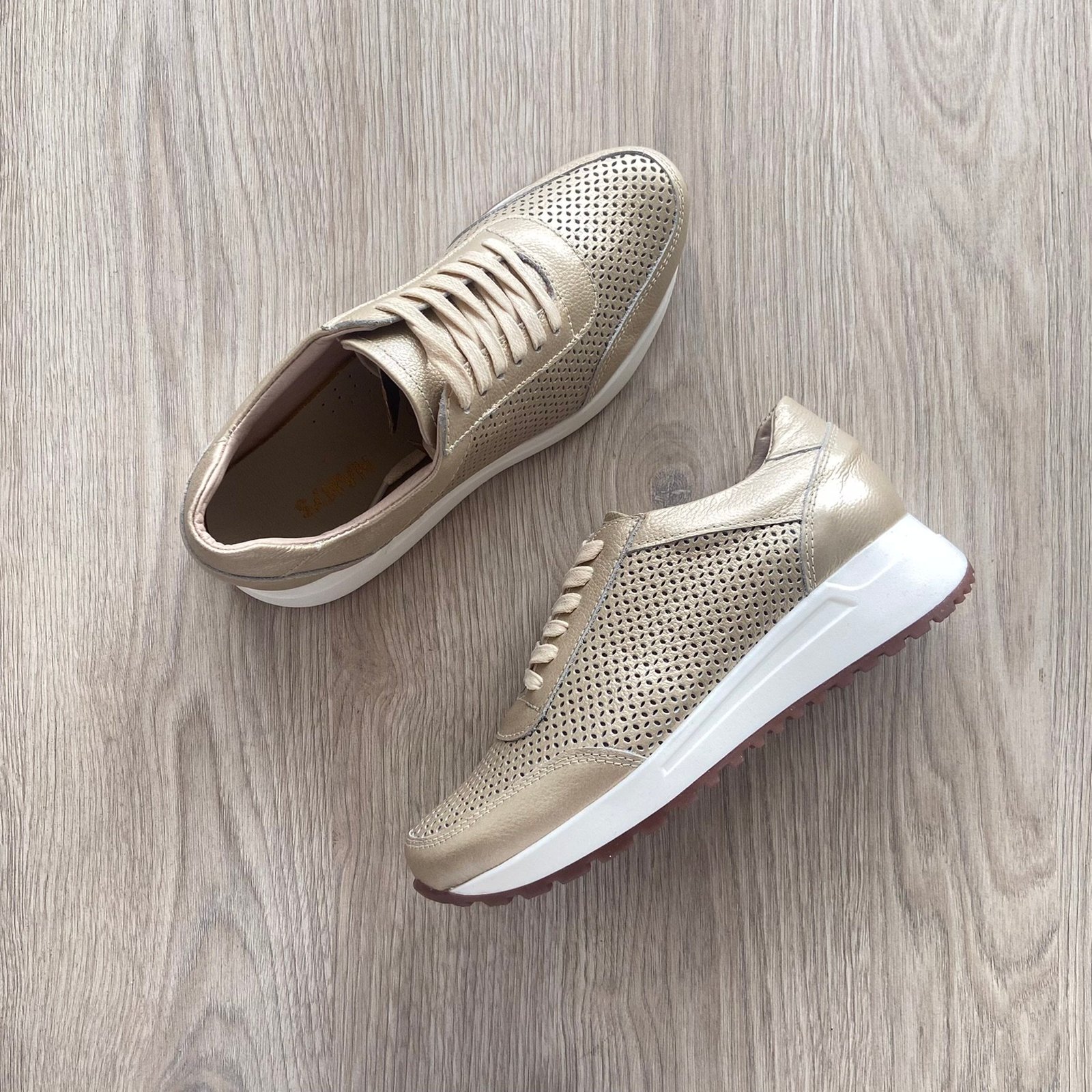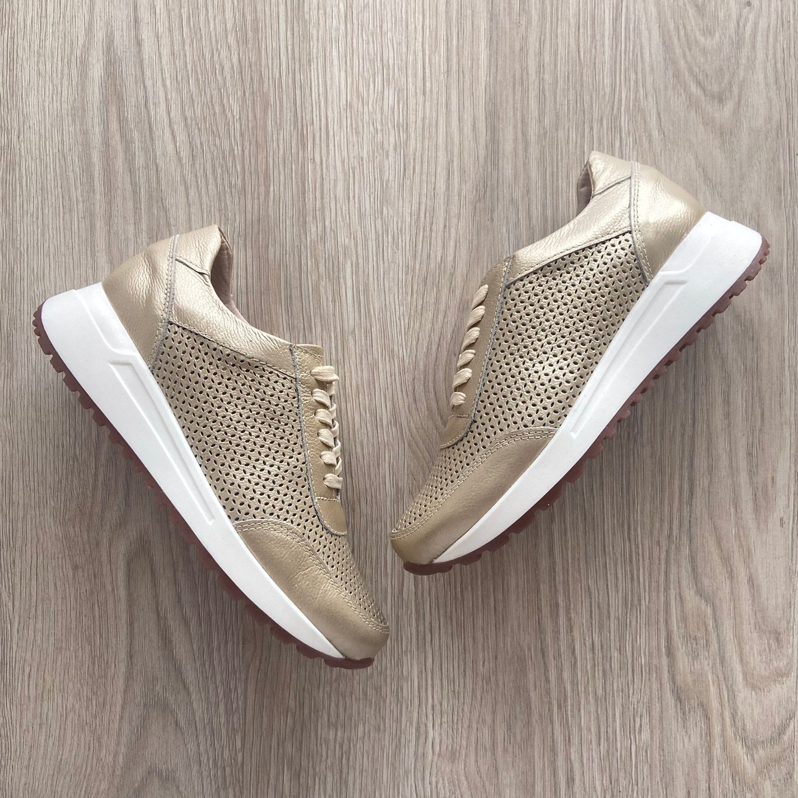 Tenis dorados en cuero con perforaciones
