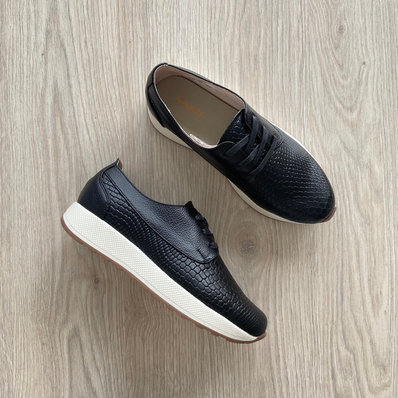 Tenis negros bajitos en cuero. Forrados en cuero. Hechos en Colombia.