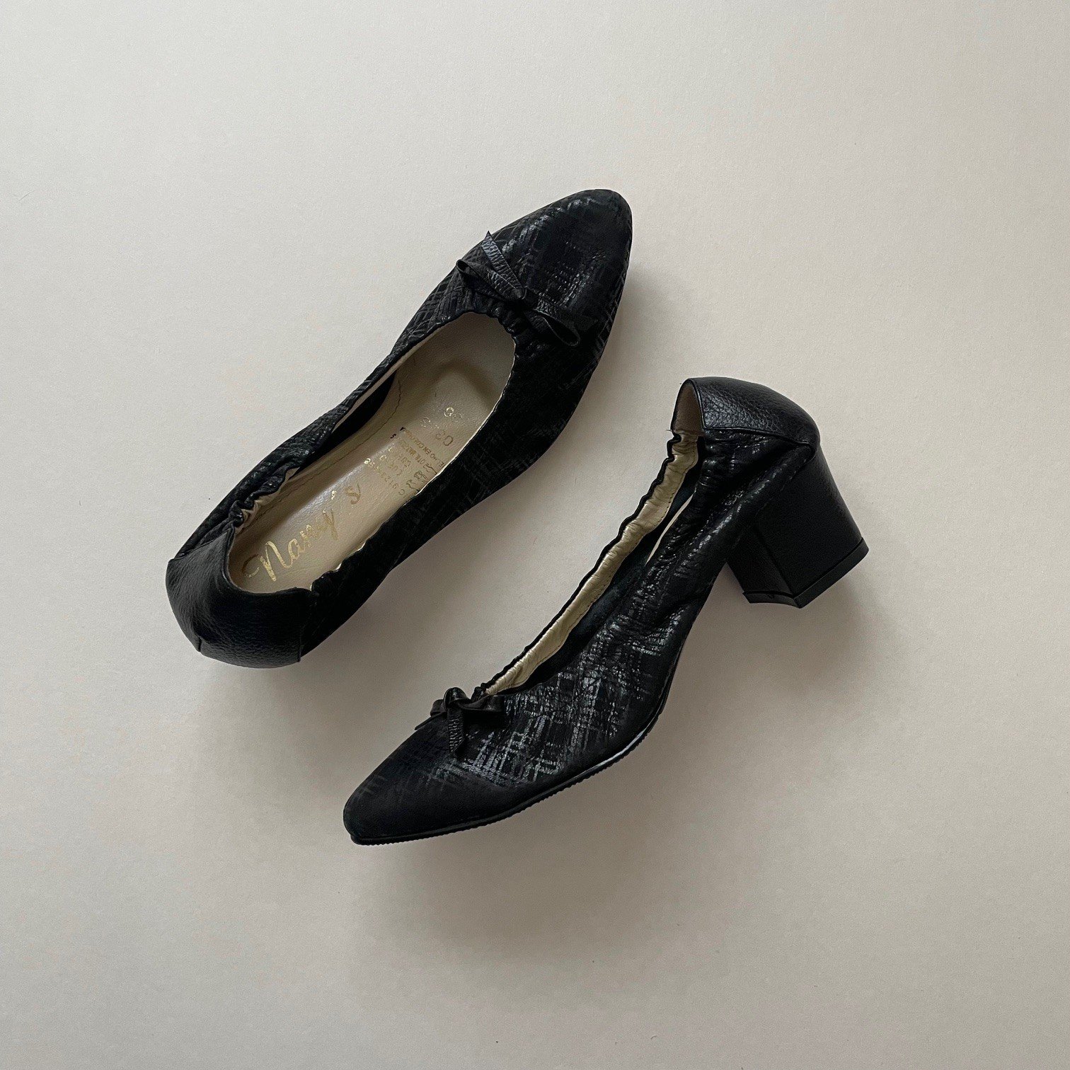 Zapatos negros en cuero tipo folia. Forrados en cuero. Tacón 4.5. Hechos en Colombia.
