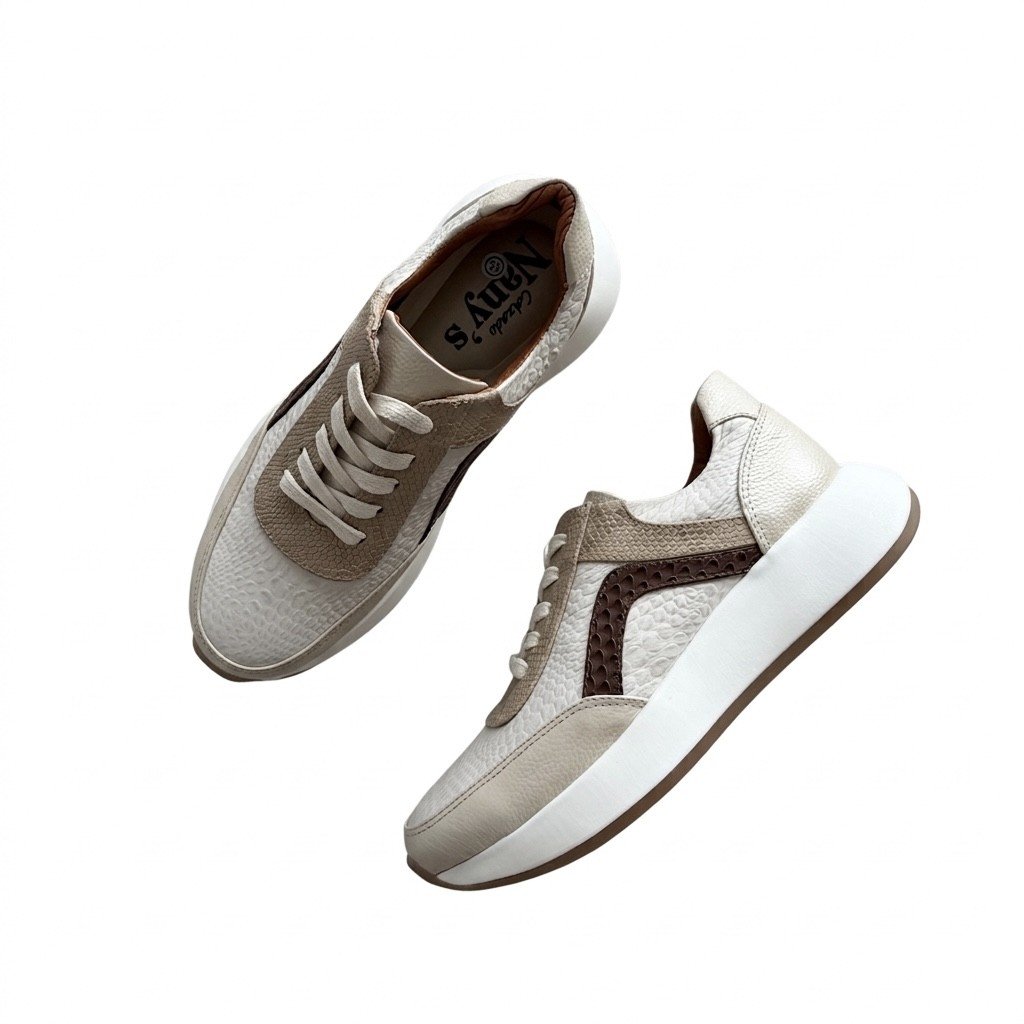 Tenis talco con cafe en cuero. Forrados en cuero. Plantilla ergonomica. Hechos en Colombia.