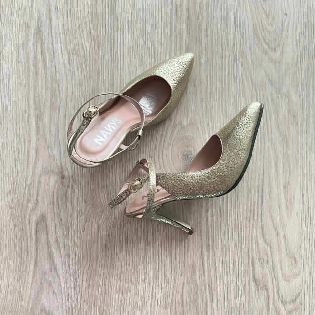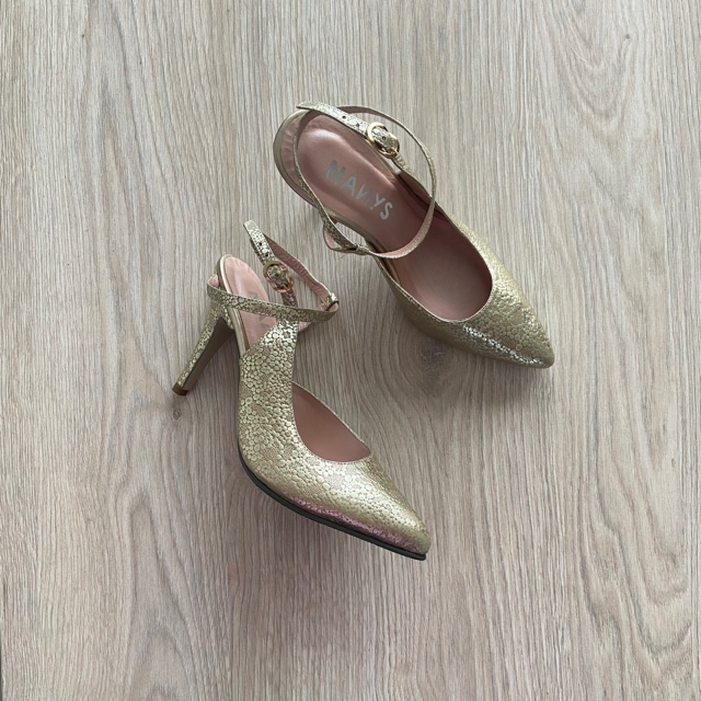 Zapatos dorado altos en cuero . Tacón 8.5 cm. Forrados en cuero. Hechos en Colombia.