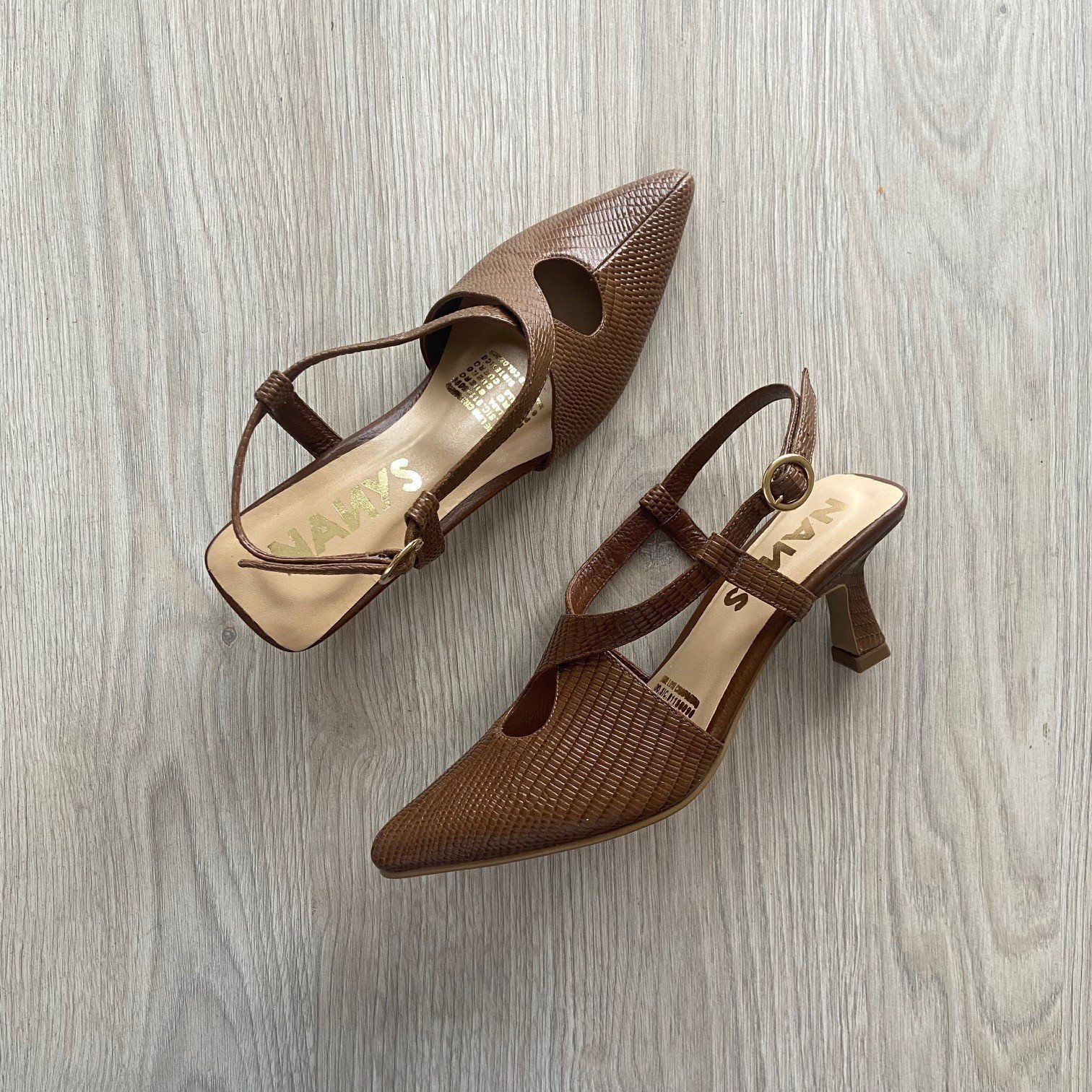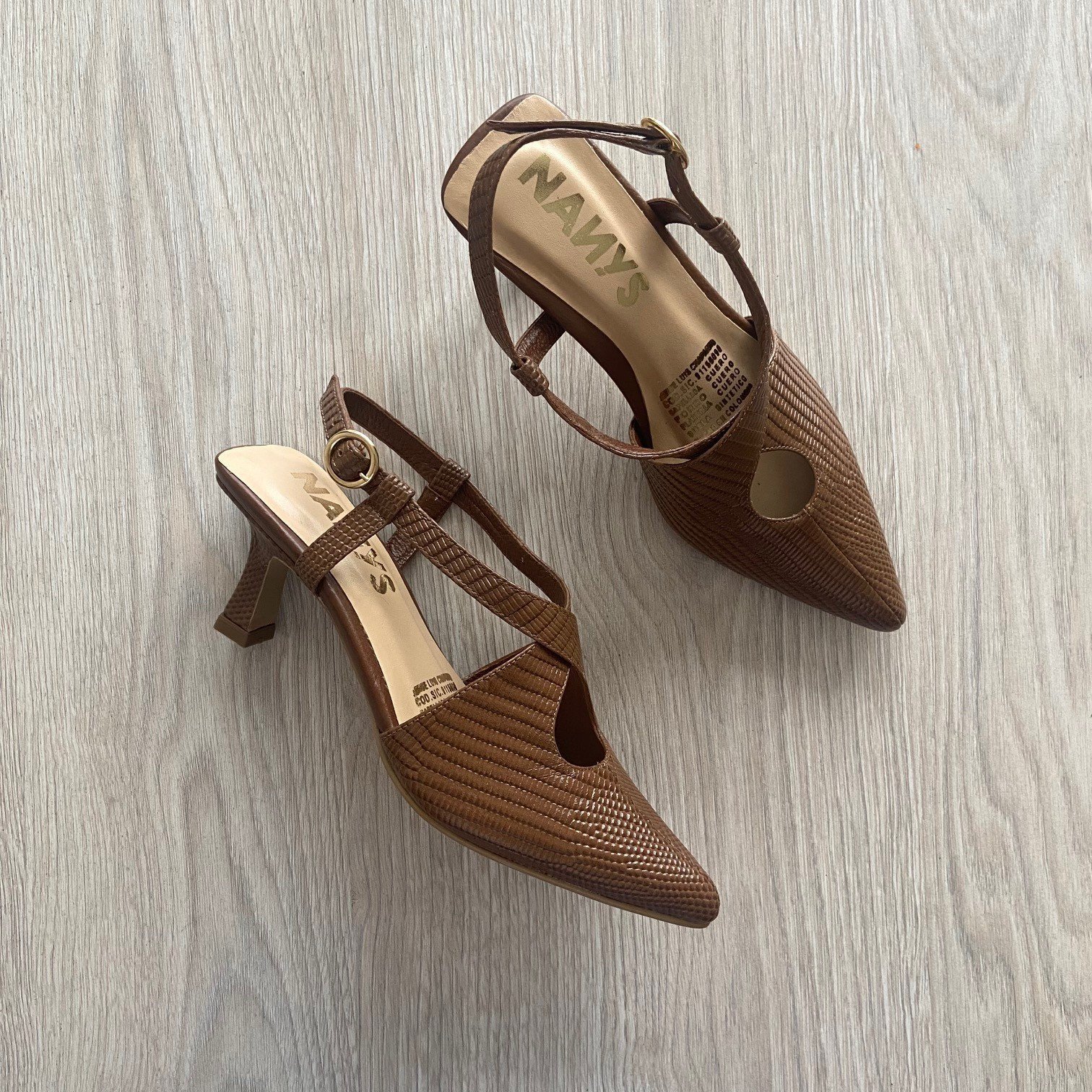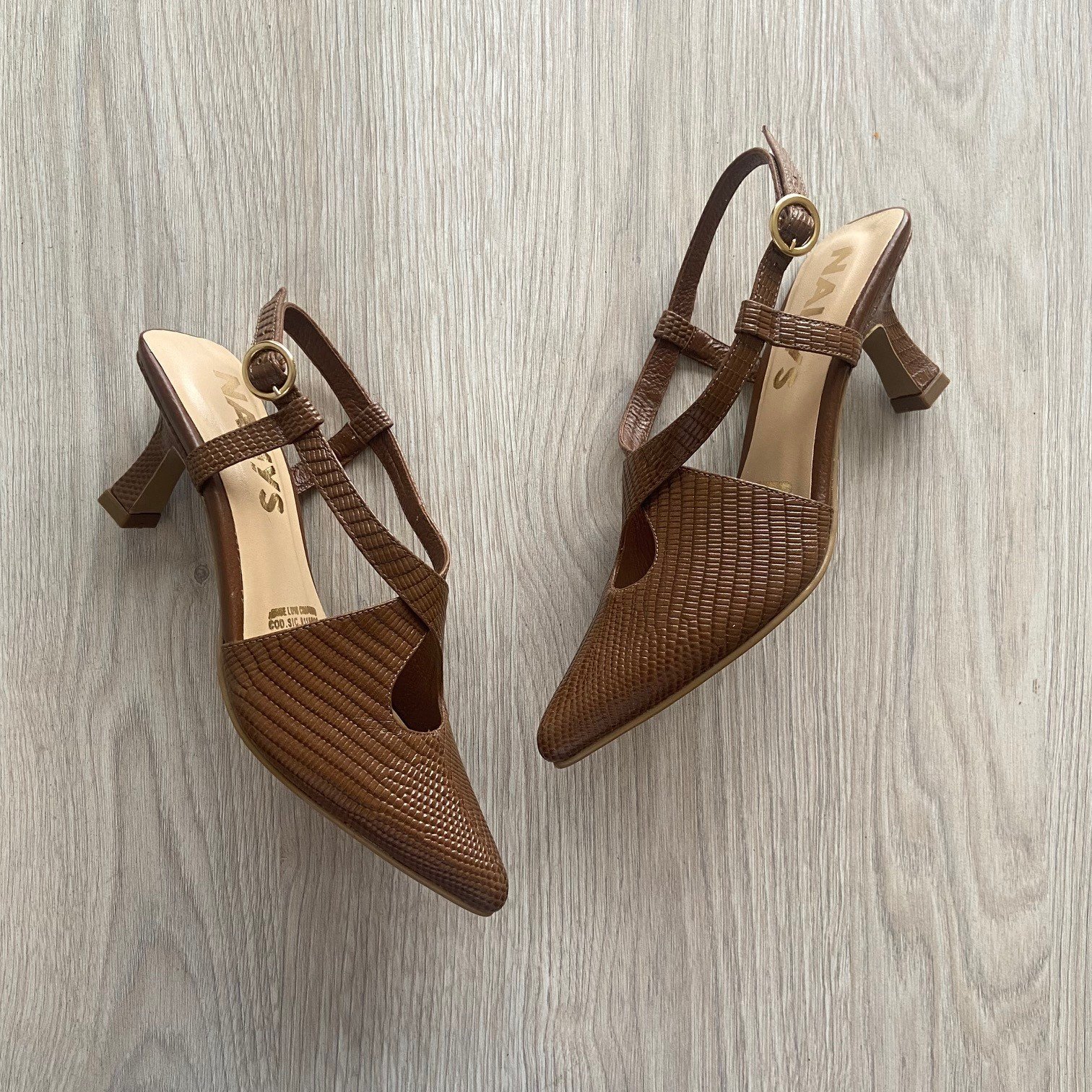 Zapatos miel en cuero cruzados. Tacón 5.5. Forrados en cuero. Hechos en Colombia.