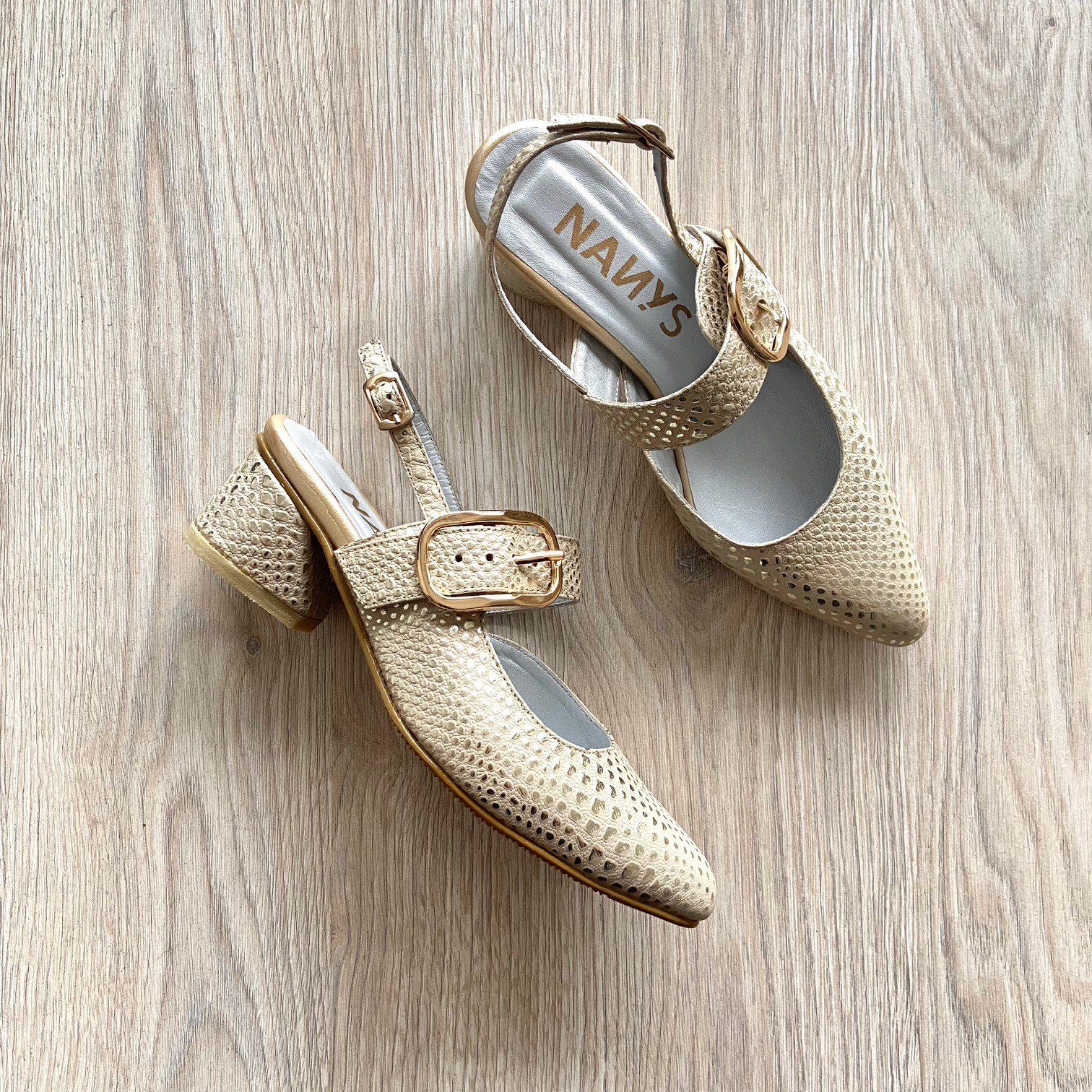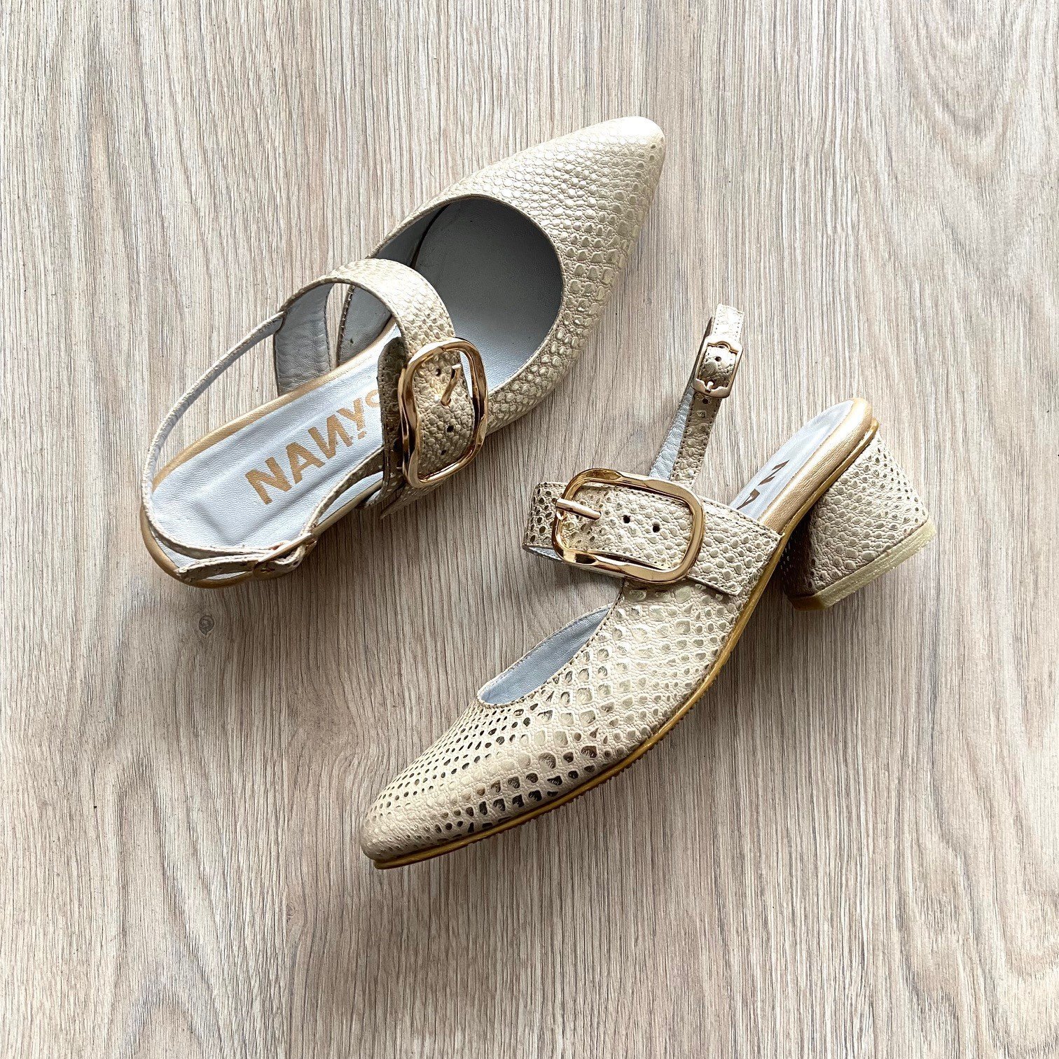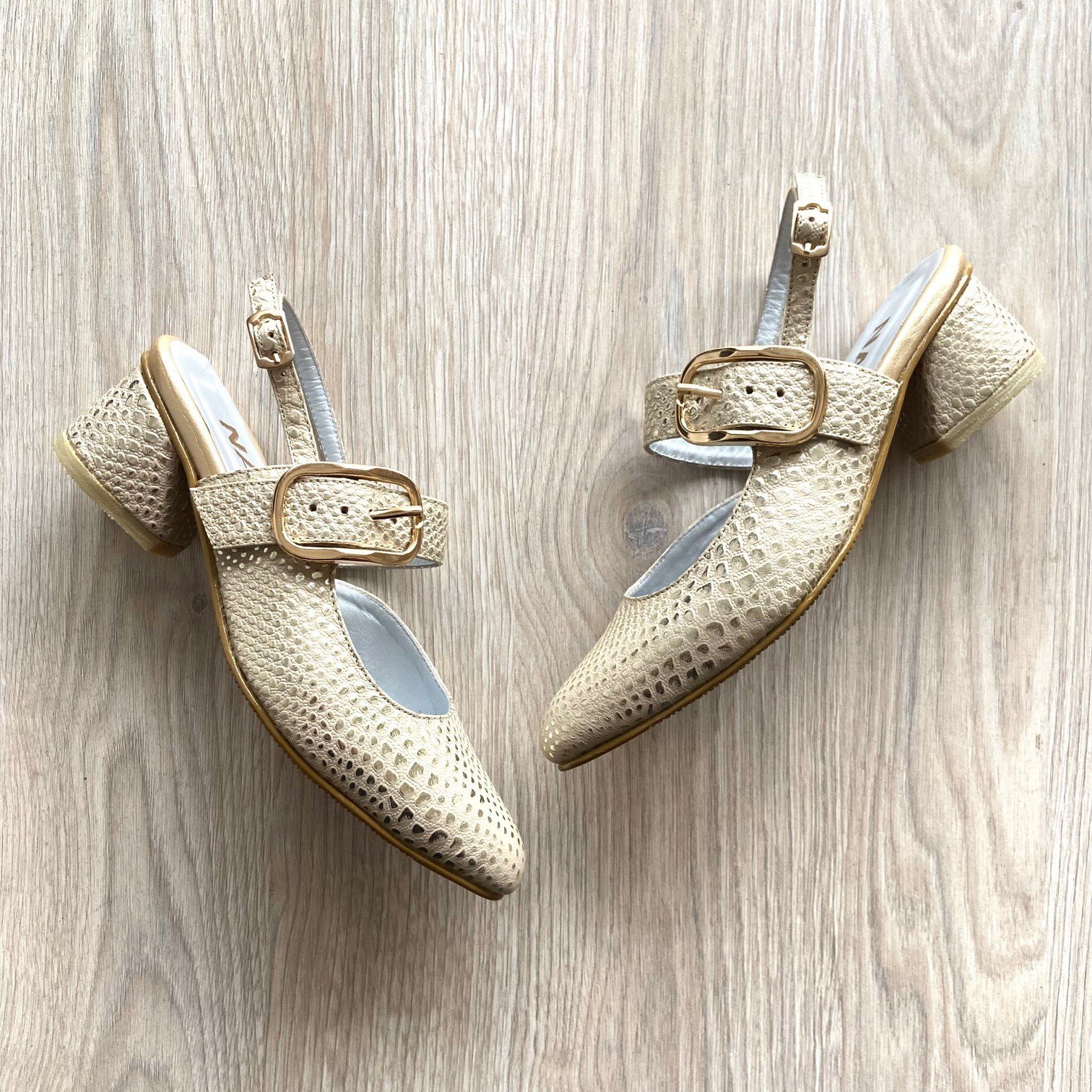 Zapatos talco en cuero con hebilla. Forrados en cuero. Tacón 3.5. Hechos en Colombia.